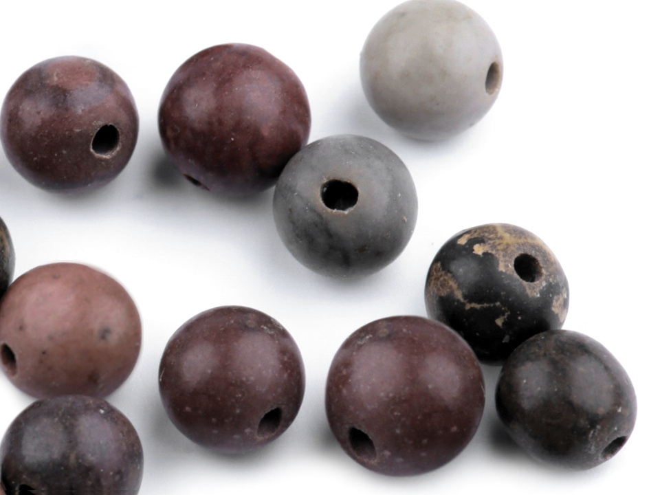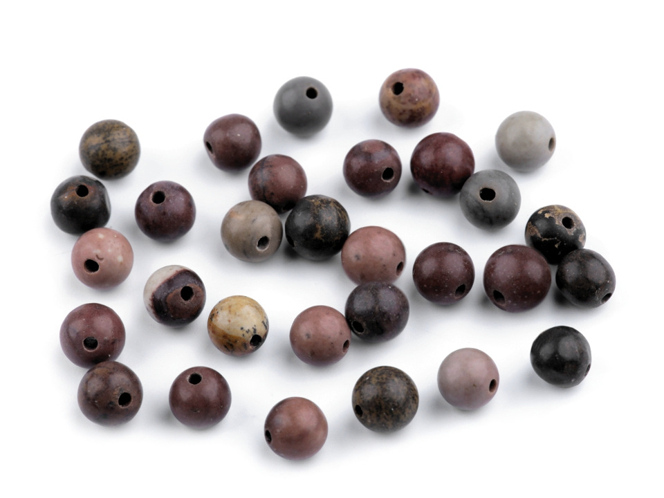 Přírodní minerálové korálky z tmavého jaspisu jsou oblíbené především šperkaři pro své zemité barvy a kresbu. Svou velikostí jsou ideální na výrobu jemnějších Buddhových náramků. Jsou oblíbené na techniku drátování, v kombinaci s drahými kovy, ale i s obyčejnými drátky. Skvěle vypadají i na jednoduchých návlekových šňůrách , které svým přírodním složením ozvláštní.