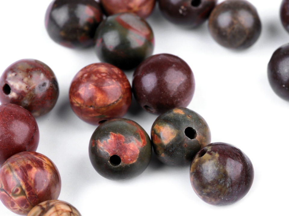 Přírodní minerálové korálky z jaspisu mocca jsou oblíbené především šperkaři pro své barvy v zemitých tónech a zajímavou kresbu. Svou velikostí jsou ideální na výrobu jemnějších Buddhových náramků. Jsou oblíbené na techniku drátování, v kombinaci s drahými kovy, ale i s obyčejnými drátky. Skvěle vypadají i na jednoduchých návlekových šňůrách , které svým přírodním složením ozvláštní.