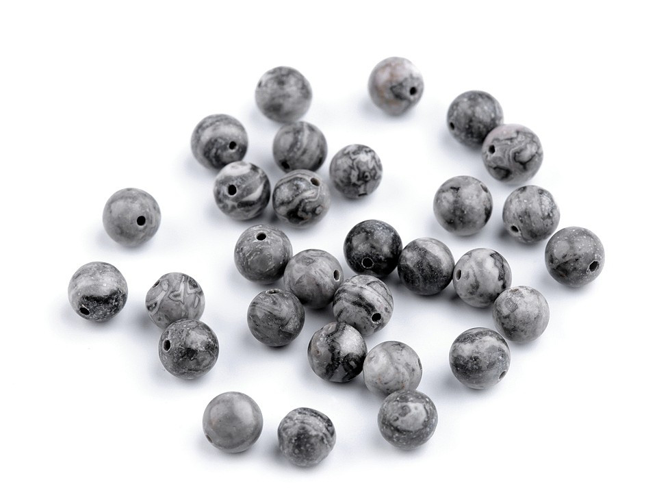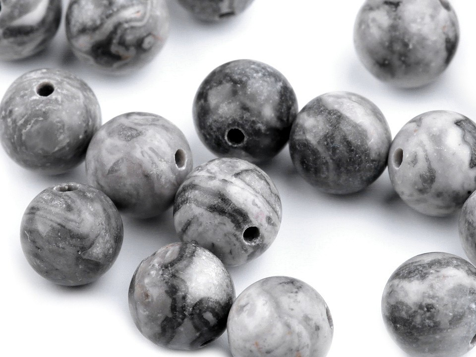 Přírodní minerálové korálky z šedého jaspisu jsou oblíbené především šperkaři pro svou zajímavou kresbu. Velikostí jsou ideální na výrobu jemnějších Buddhových náramků. Jsou oblíbené na techniku drátování, v kombinaci s drahými kovy, ale i s obyčejnými drátky. Skvěle vypadají i na jednoduchých návlekových šňůrách , které svým přírodním složením ozvláštní.