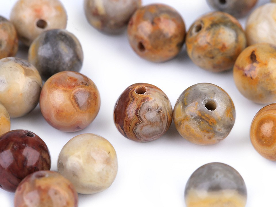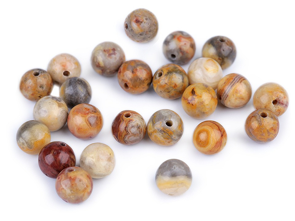 Přírodní minerálové korálky ze žlutého achátu jsou oblíbené především šperkaři pro svou jedinečnou kresbu a barvy. Svou velikostí jsou ideální na výrobu Buddhových náramků. Jsou oblíbené na techniku drátování, v kombinaci s drahými kovy, ale i s obyčejnými drátky. Skvěle vypadají i na jednoduchých návlekových šňůrách , které svým přírodním složením ozvláštní.