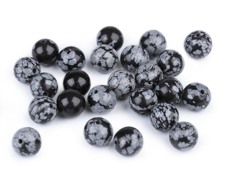 Přírodní minerálové korálky z vločkového obsidiánu jsou oblíbené především šperkaři pro svou jedinečnou kresbu. Svou velikostí jsou ideální na výrobu Buddhových náramků. Jsou oblíbené na techniku drátování, v kombinaci s drahými kovy, ale i s obyčejnými drátky. Skvěle vypadají i na jednoduchých návlekových šňůrách , které svým přírodním složením ozvláštní.