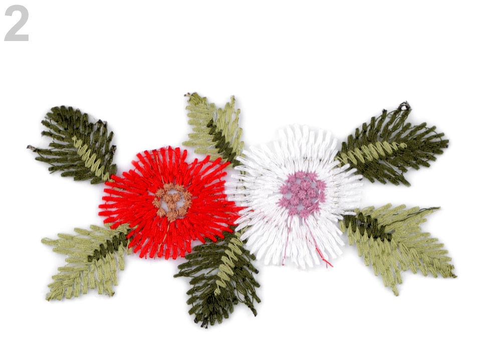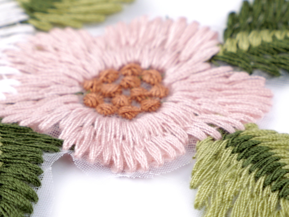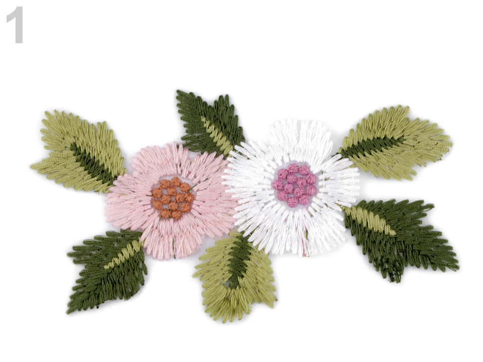 Nášivka květů dokonale oživí vaše oblečení. Je vyšitá na podkladovém monofilu.