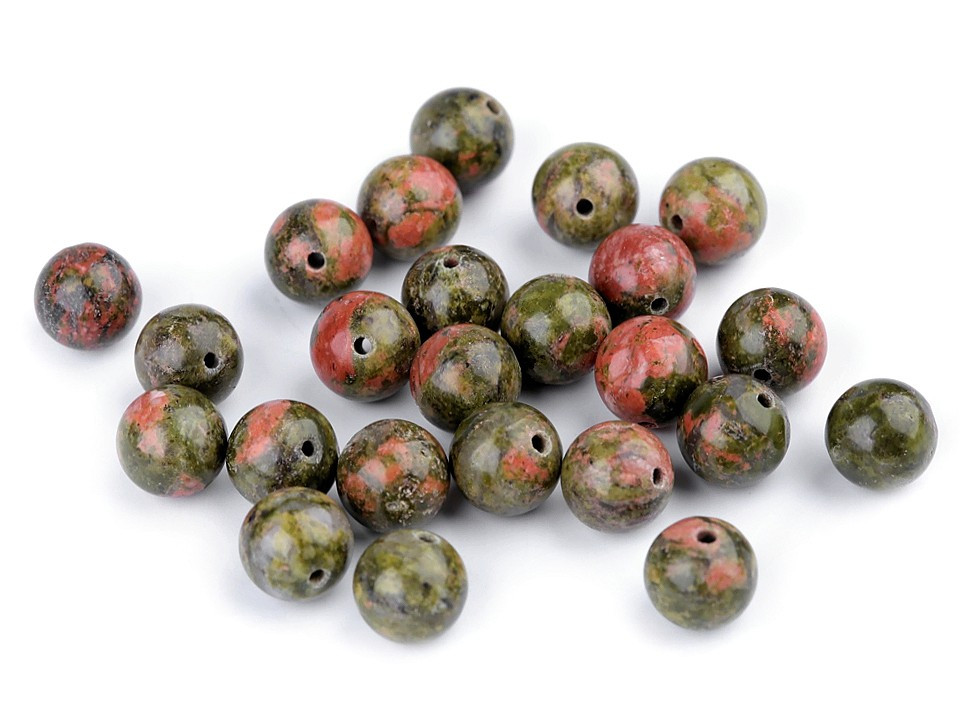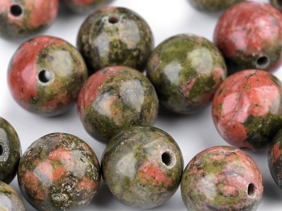 Přírodní minerálové korálky z unakitu jsou oblíbené především šperkaři pro svou zajímavou barvu a kresbu. Svou velikostí jsou ideální na výrobu Buddhových náramků. Jsou oblíbené na techniku drátování, v kombinaci s drahými kovy, ale i s obyčejnými drátky. Skvěle vypadají i na jednoduchých návlekových šňůrách , které svým přírodním složením ozvláštní.