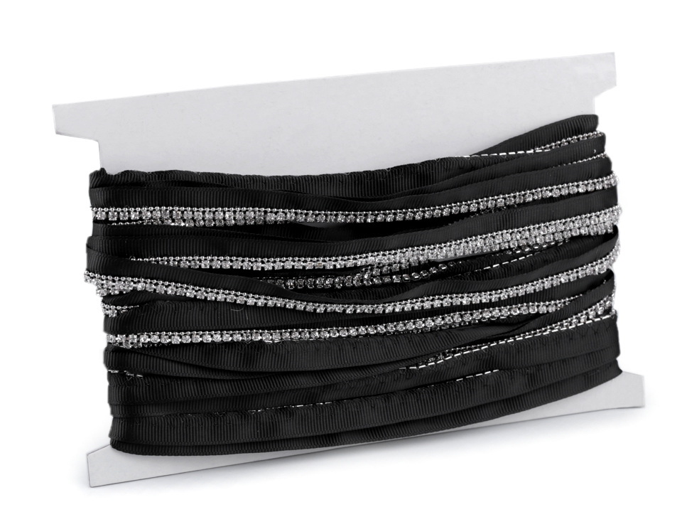 Rypsový prýmek se štrasovými kamínky a řetízkem dodá vašim oděvům slavnostní třpyt a lesk. Je pevný, ale přitom jemný a velice elegantní.