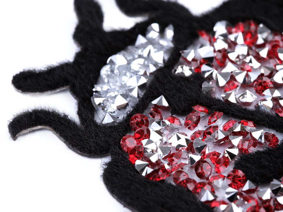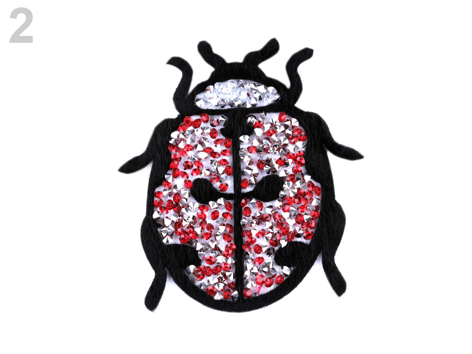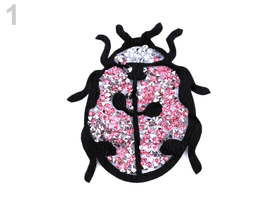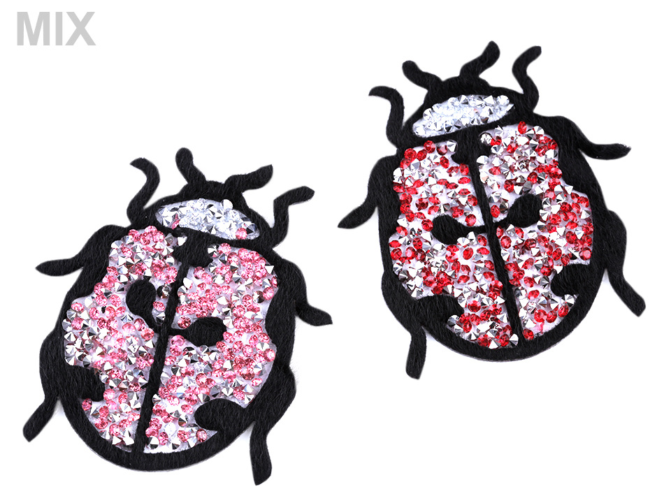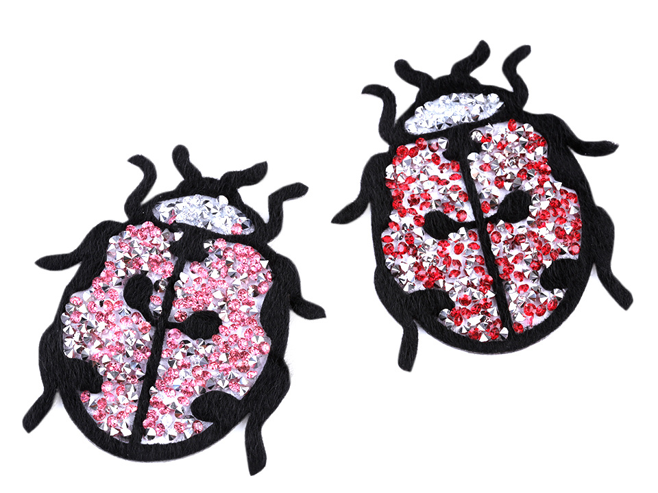 Nažehlovačku s motivem berušky zkrášlují třpytivé kamínky. Ozdobíte s ní košile, mikiny, tašky nebo čepice. Nažehlovačka také skryje malé dírky a drobné nedokonalosti v textilu. Spodní plochu nažehlovačky tvoří polyetylénové lepidlo.
