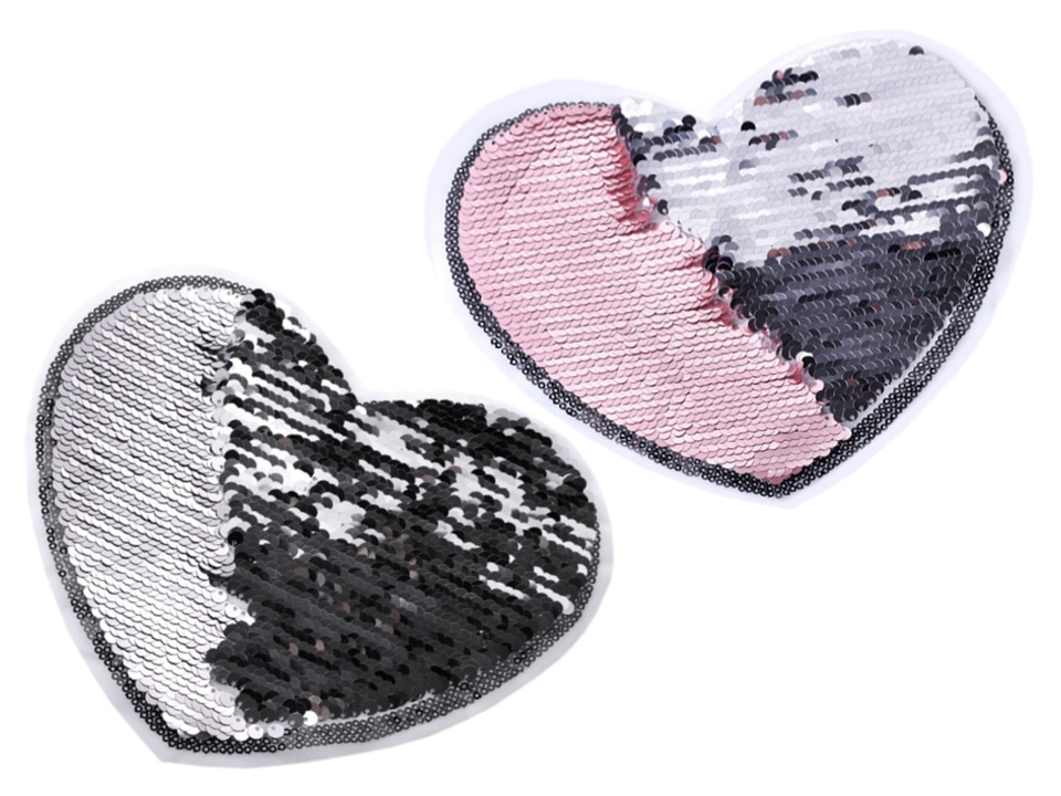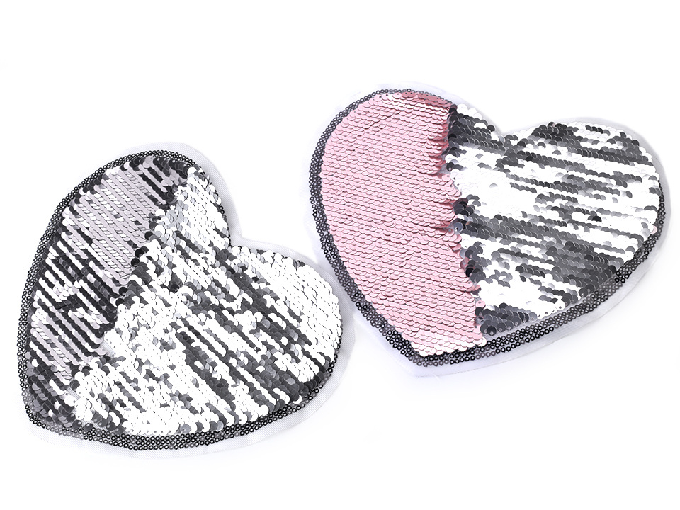 Našívací srdce s měnícími flitry potěší malé i větší slečny. Oblečení už nemusí být nudné, ale hravé - důmyslně našité flitry umožňují měnit jejich barvu pouhým pohlazením, čímž dokážou změnit i samotný vzhled oděvu.