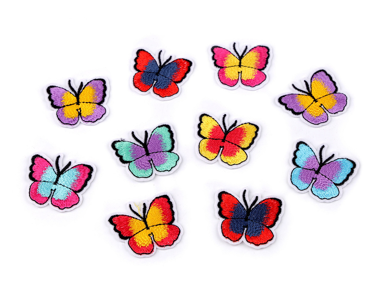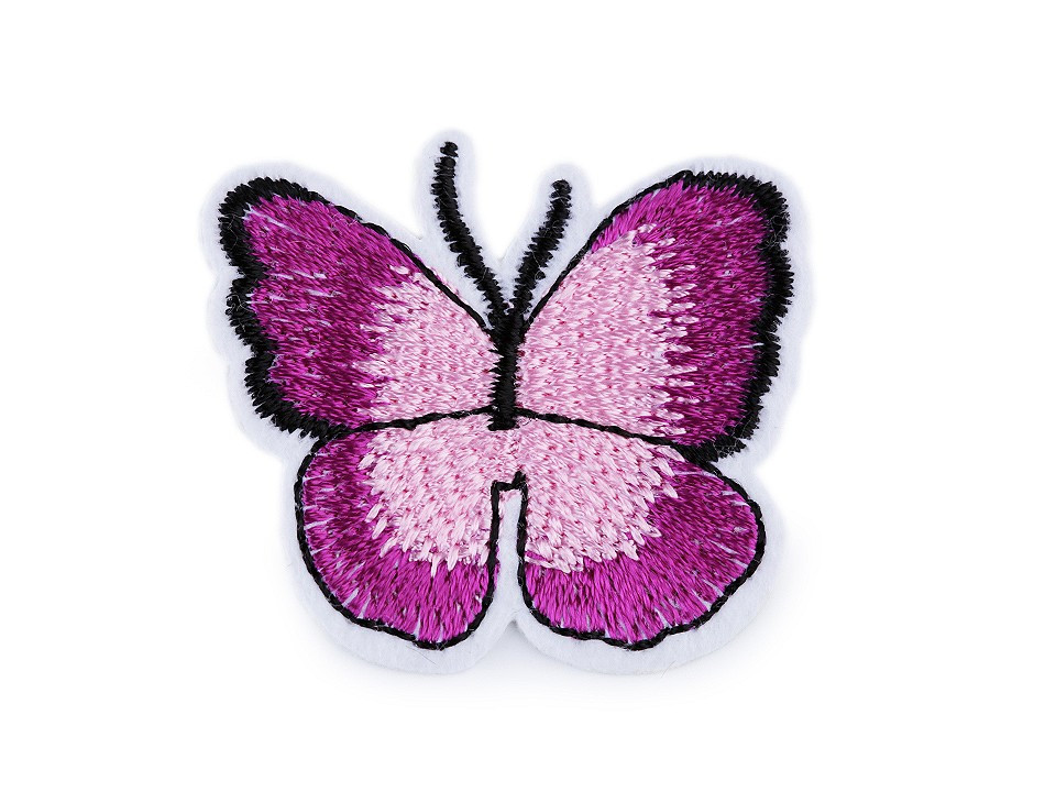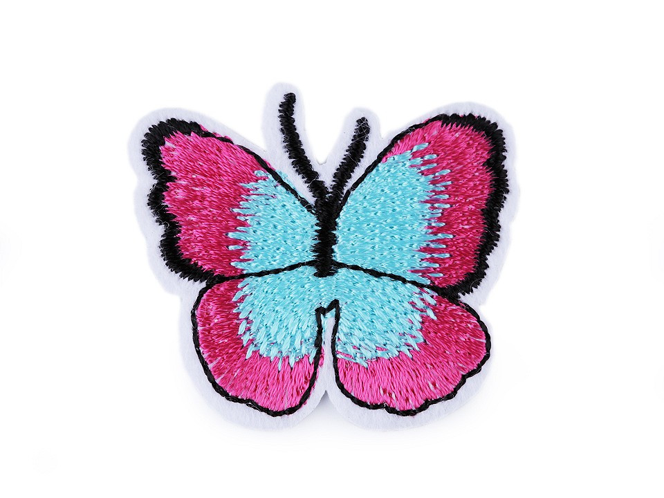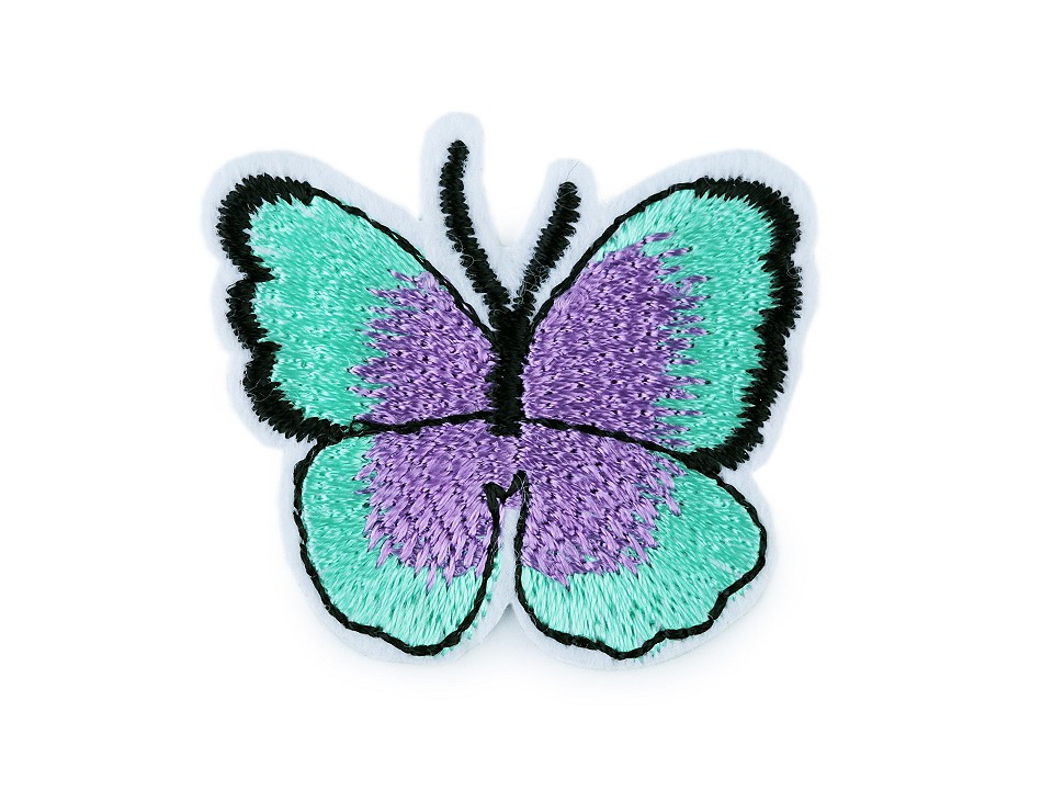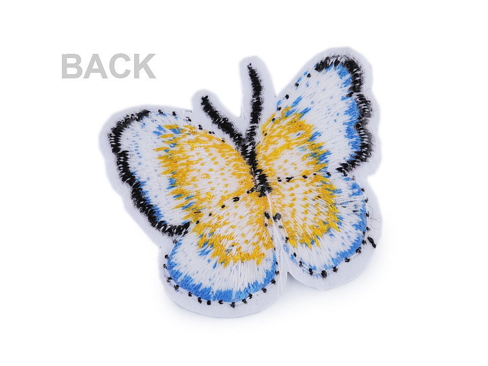 Nažehlovačka motýla má kvalitní provedení. Je celoplošně vyšívaná a jemně se leskne. Vynikne na oblečení, módních doplňcích i na bytových dekoracích.