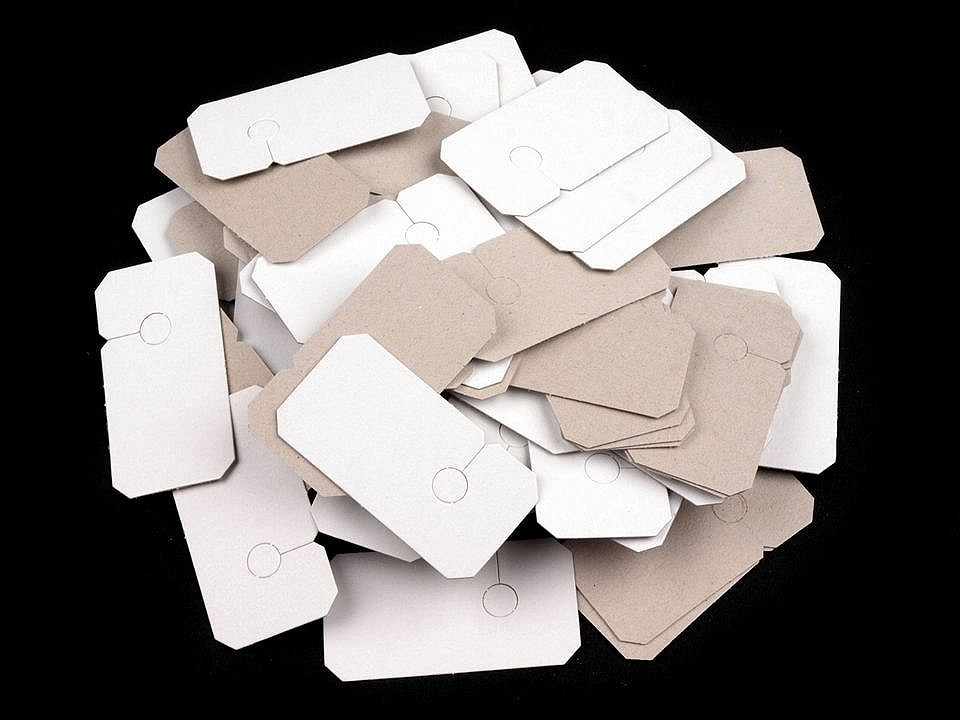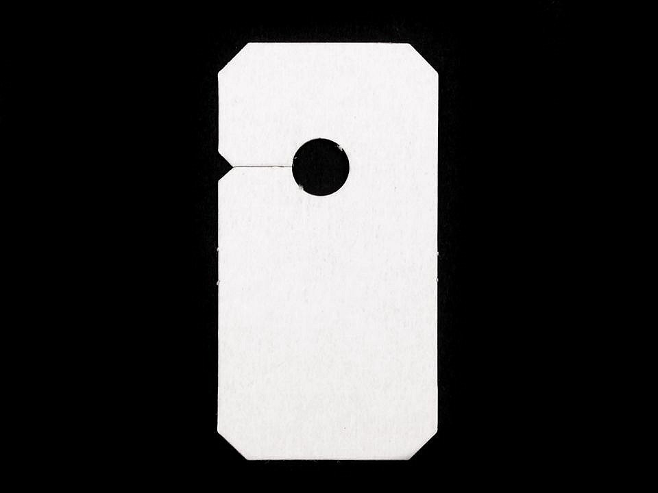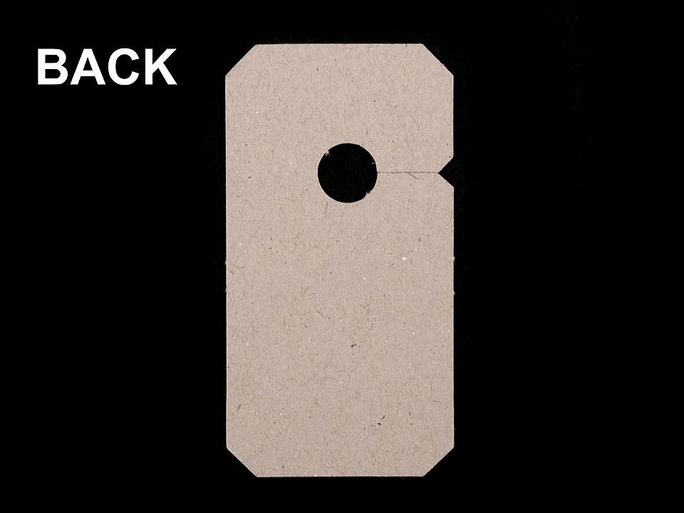 Závěska je vyrobena z papíru. Na zip ji připevníte pomocí sešívačky a pak ji pověsíte na stojan. Průměr kulatého otvoru je 8 mm.