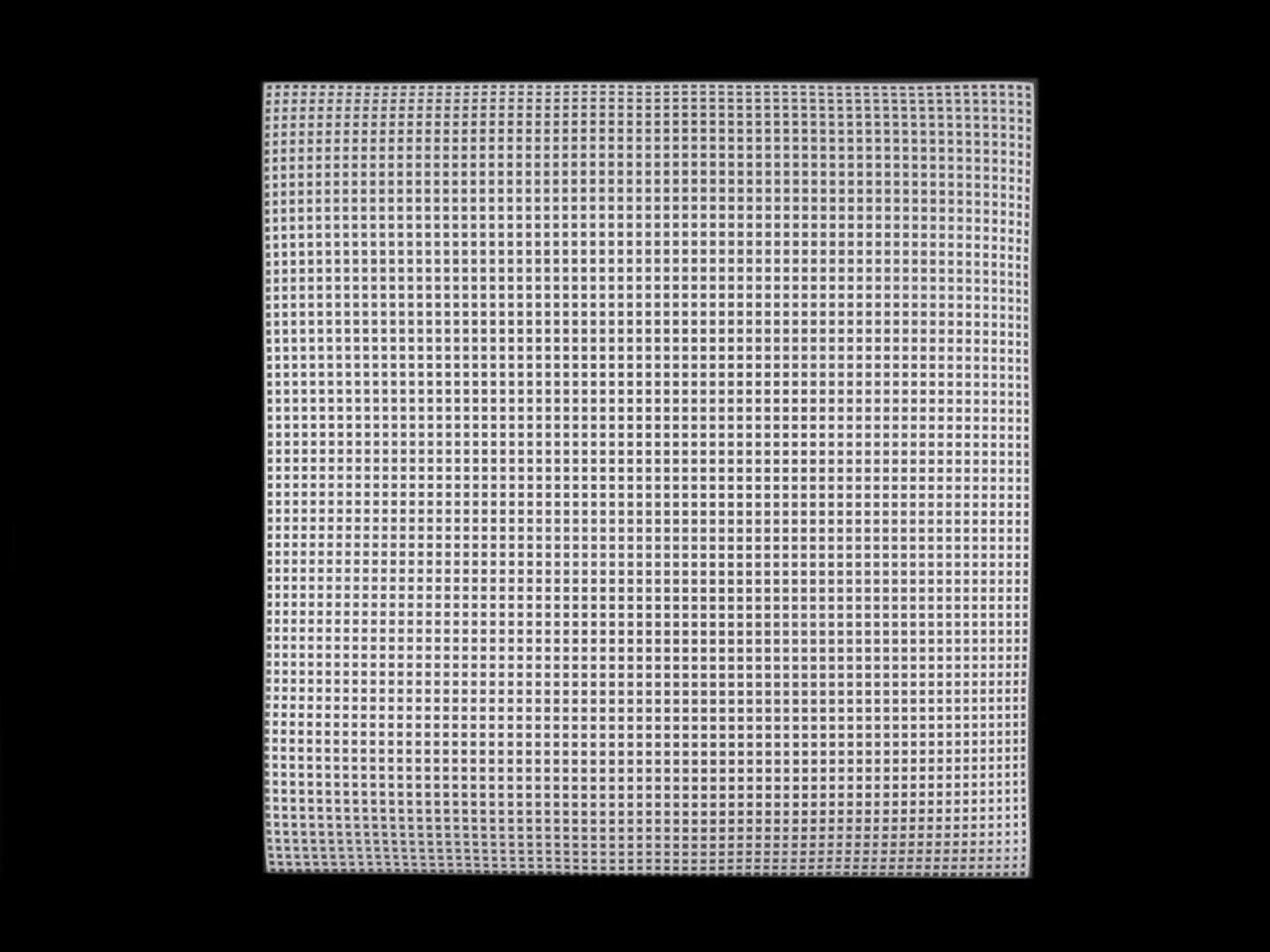 Plastová mřížka o rozměrech 37 x 41,5 cm se používá na vyšívané závěsné dekorace. V dnešní době se plastová kanava používá čím dál více. Používá se hlavně k výrobě krabiček a dalších dekorací a ozdob do květináčů. Nejdříve obrázek vyšijete klasickým křížkovým stehem a pak vystřihnete.