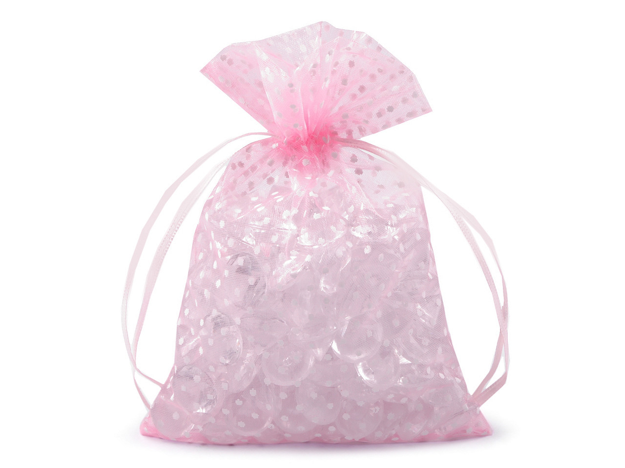Dárkový pytlík z organzy zdobí potisk puntíků. Snadno ho uzavřete pomocí dvou stahovacích saténových šňůrek. Pytlík je vhodný na zabalení dárků, můžete do něj uschovat vaše osobní poklady nebo naaranžovat voňavé sušené květy.