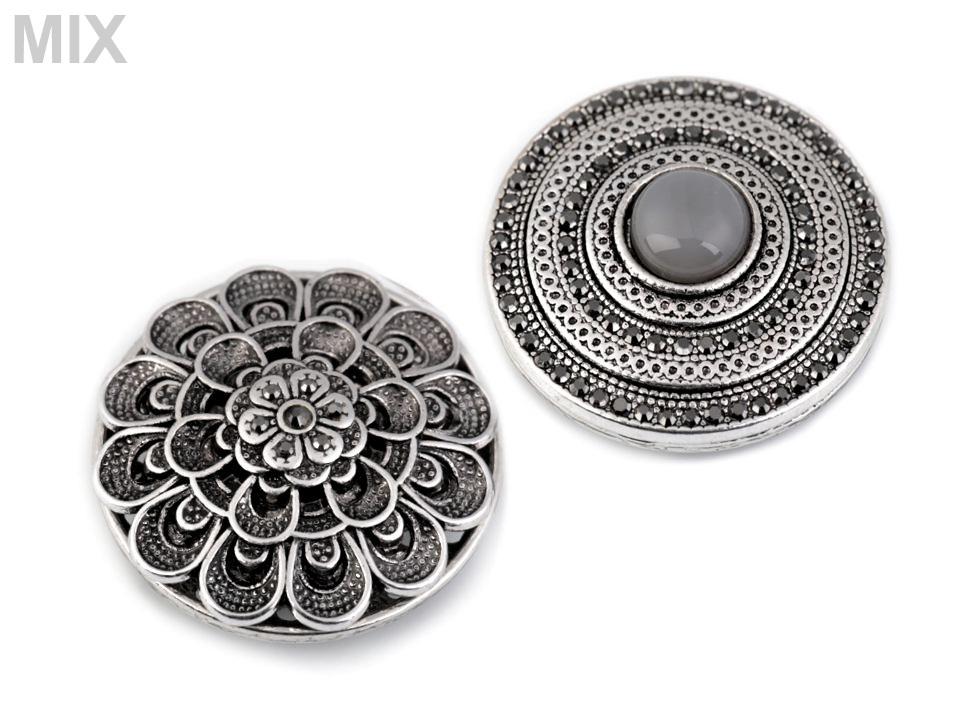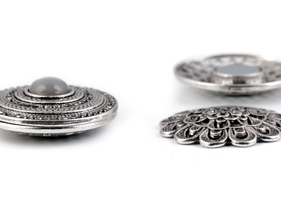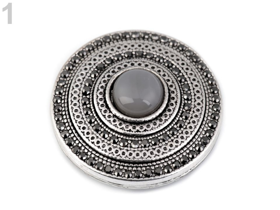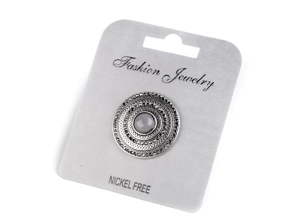 Magnetickou brož zdobí broušené kamínky. Funguje tak, že na přední stranu látky se dá ozdobná část brože a na zadní stranu látky protikus. Vynikne na halenkách, tričkách, svetřících i šátcích. Magnety jsou pevné, nehrozí, že vám brož jen tak lehce upadne.