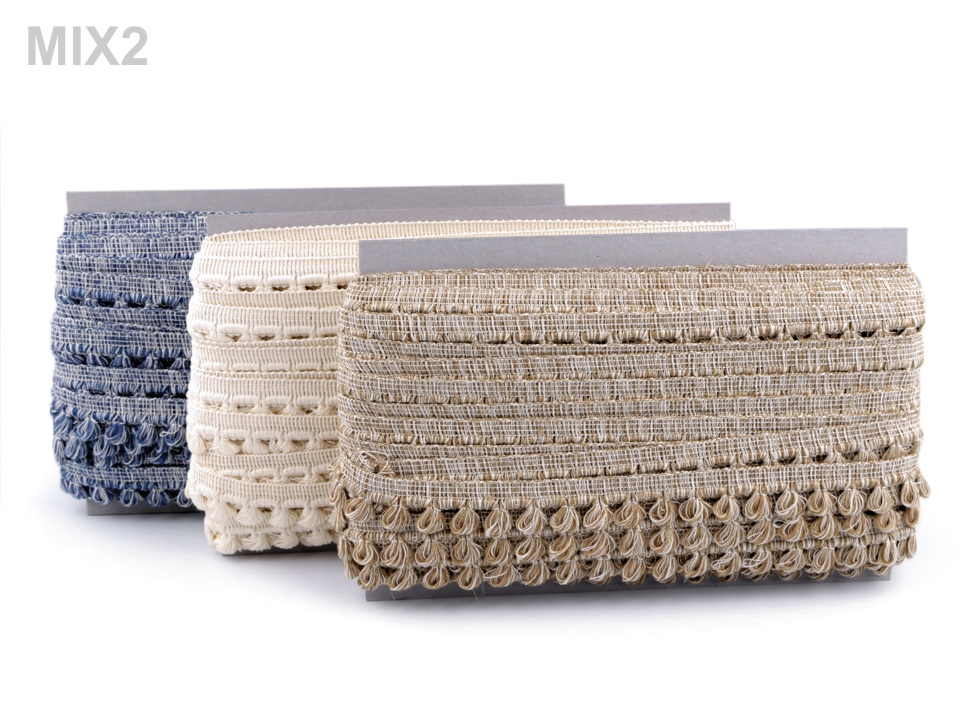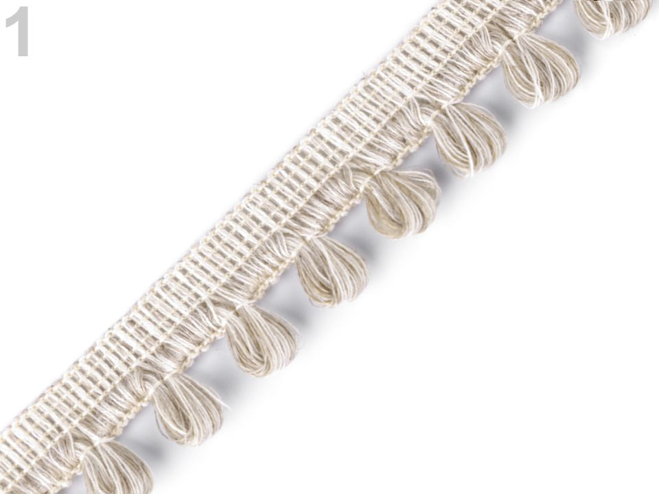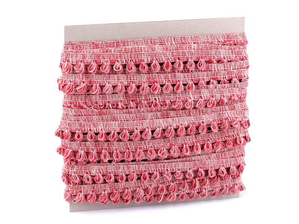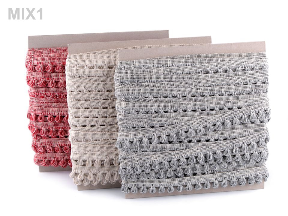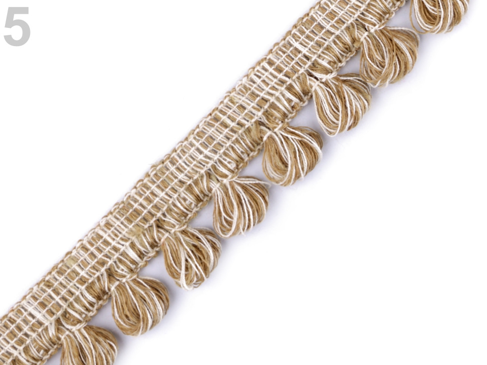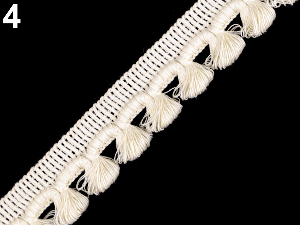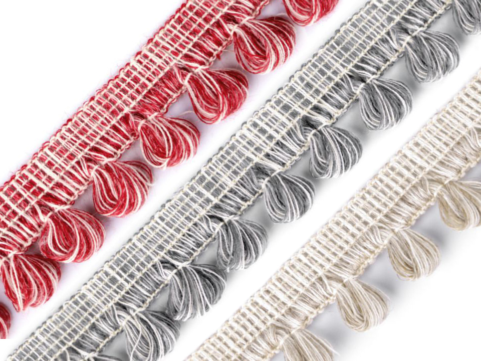 Prýmek bude slušet vašemu oblečení i módním doplňkům, bytovému textilu pak dodá nádech venkovského provance stylu. Prýmek je pevný, není pružný.