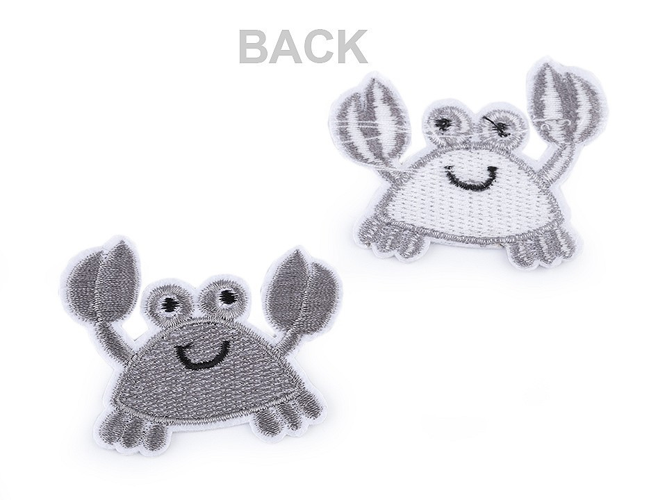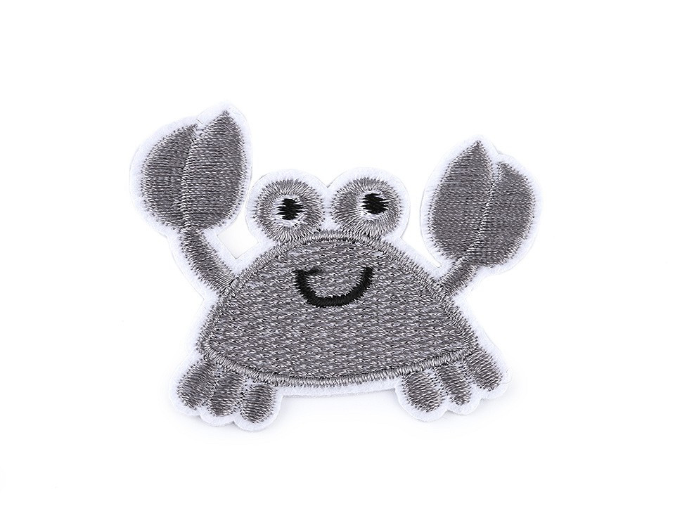 Nažehlovačka s veselým krabem je velice kvalitní, má celoplošnou výšivku. Oživí oblečení i doplňky.