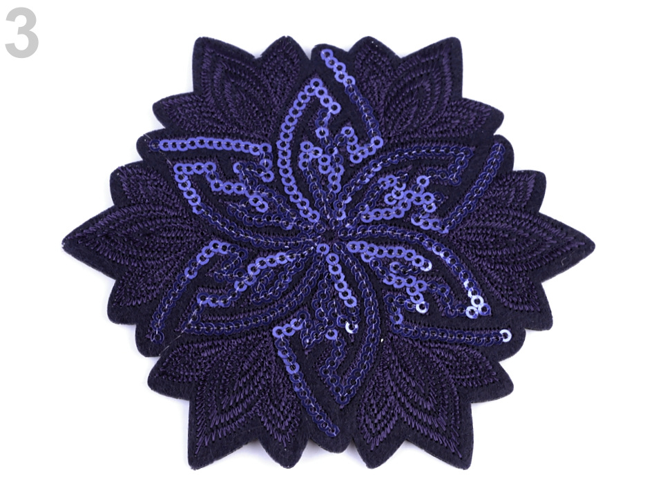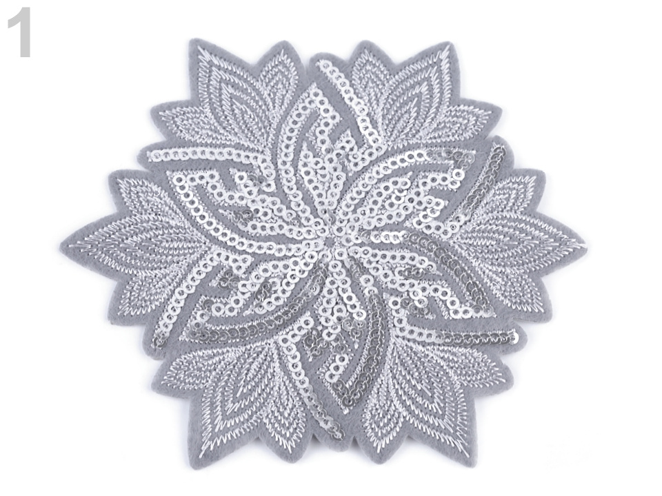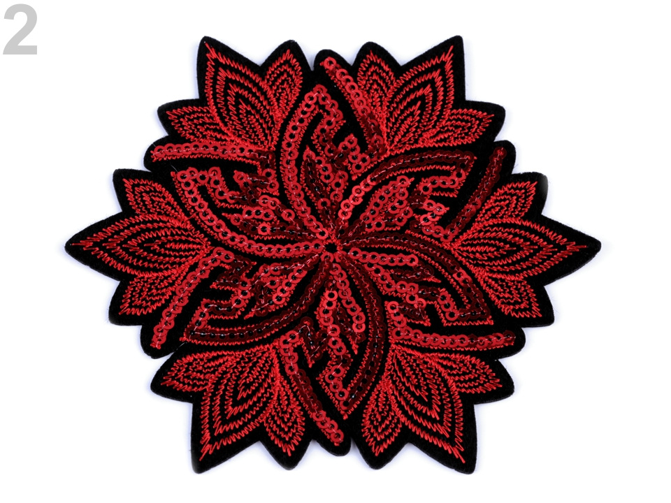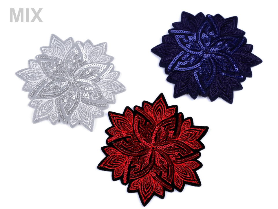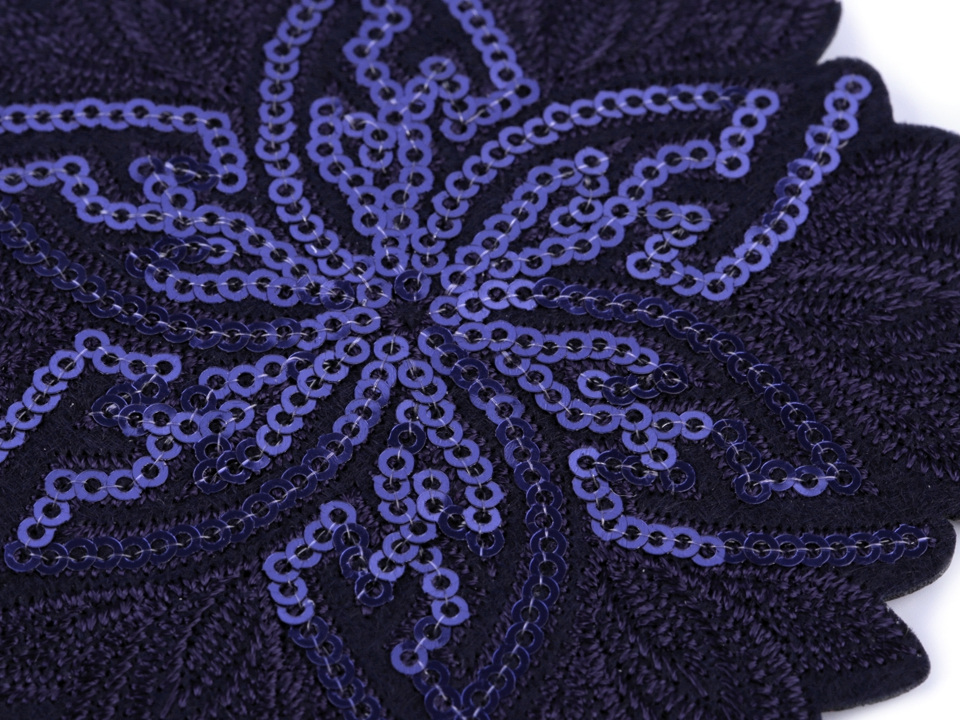 Luxusní nažehlovačka květu s flitry se oslnivě leskne. Bude výrazným a nepřehlednutelným prvkem, oživujícím oblečení i doplňky. Je velice kvalitní, kromě flitrů má i detailní strojovou výšivku.