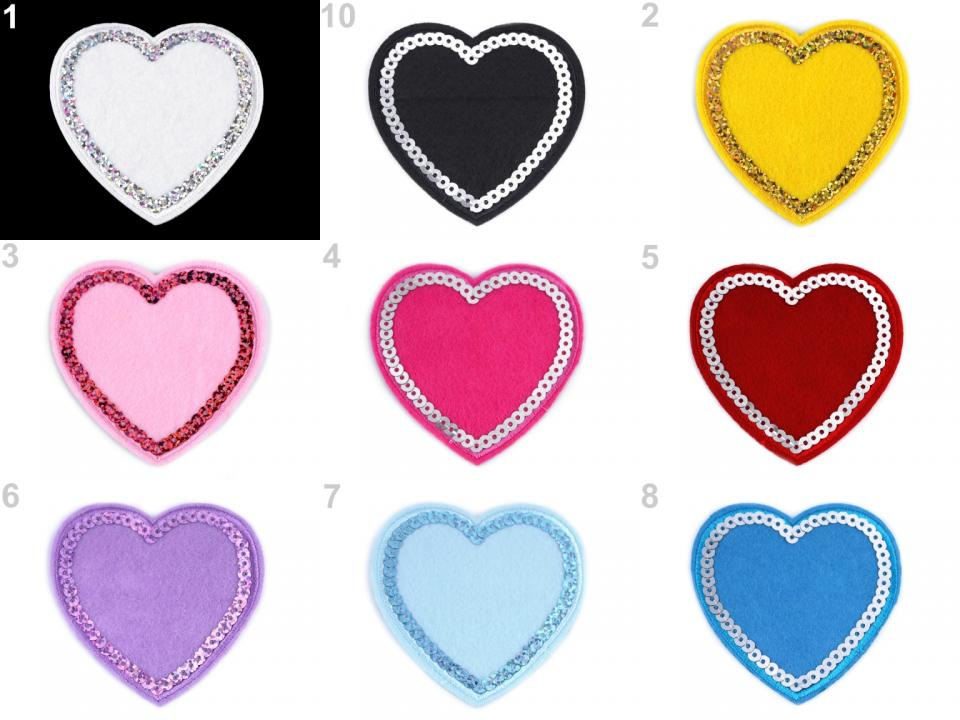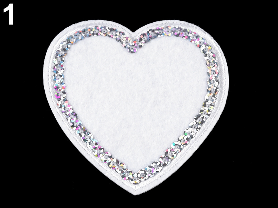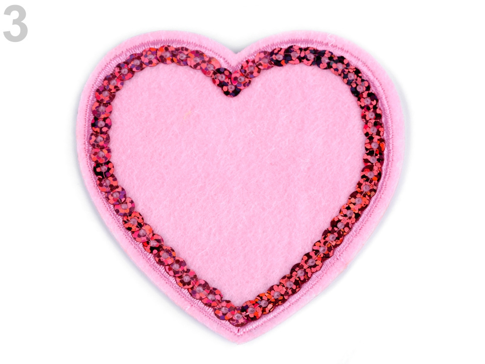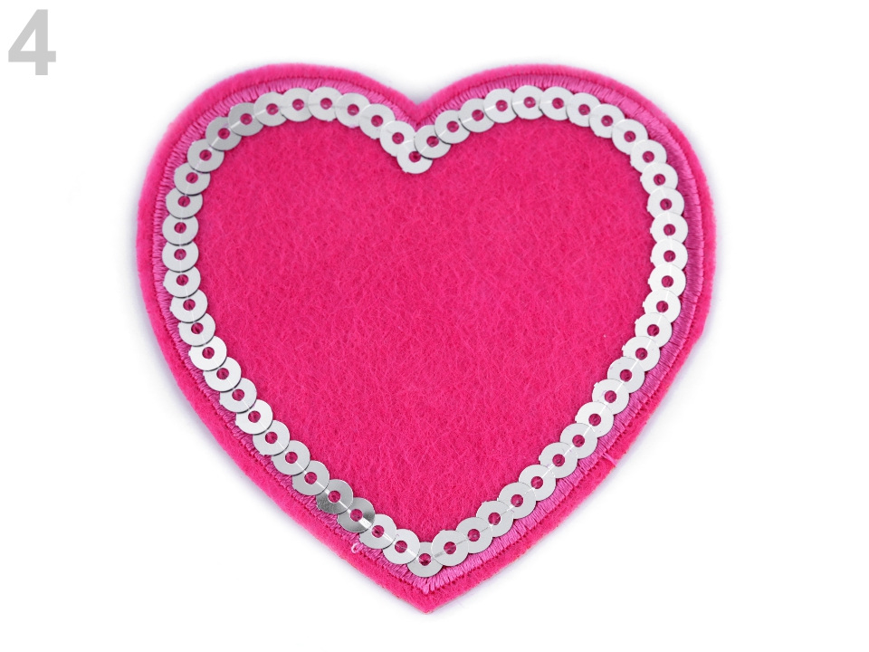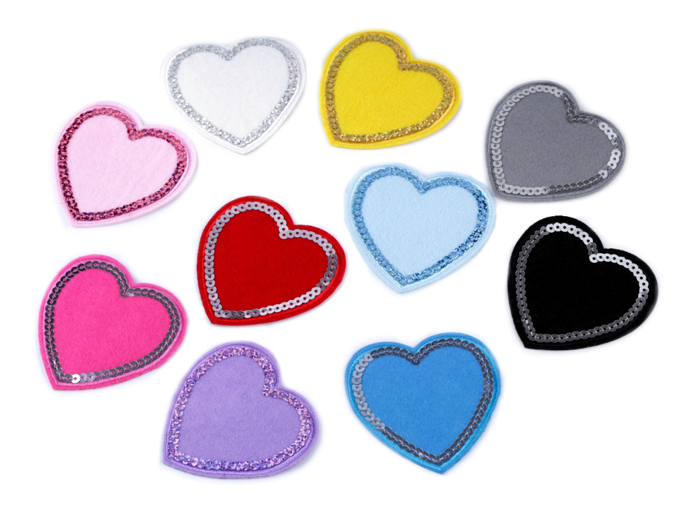 Nažehlovačka s motivem srdce je po stranách ozdobená flitry. Skvěle oživí džíny, bundy, saka, čepice, batohy či tašky.