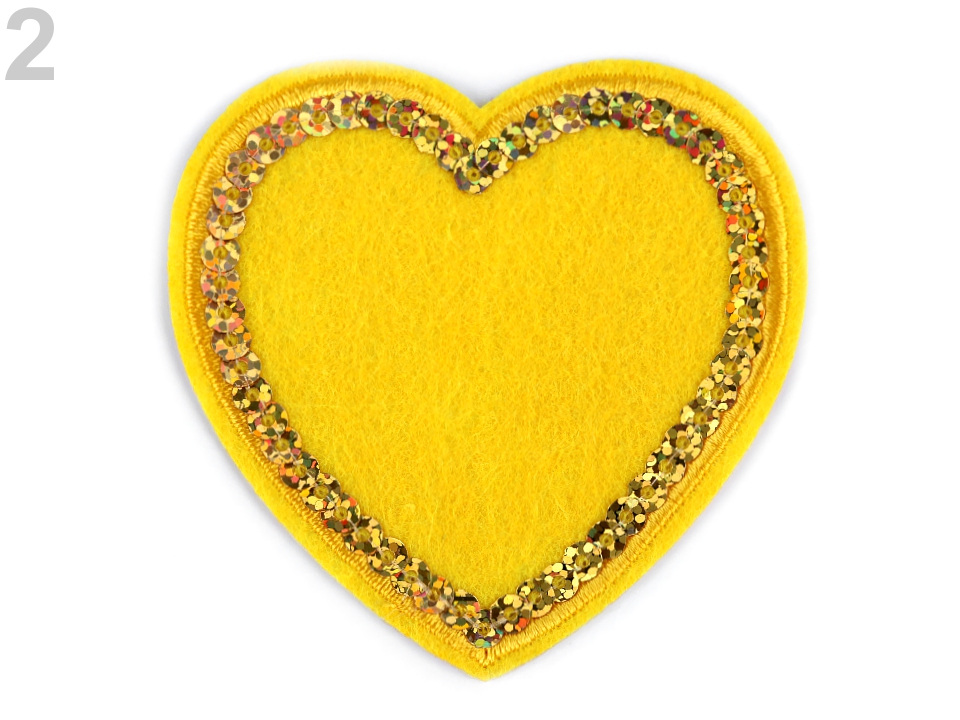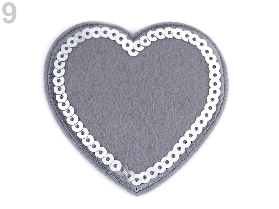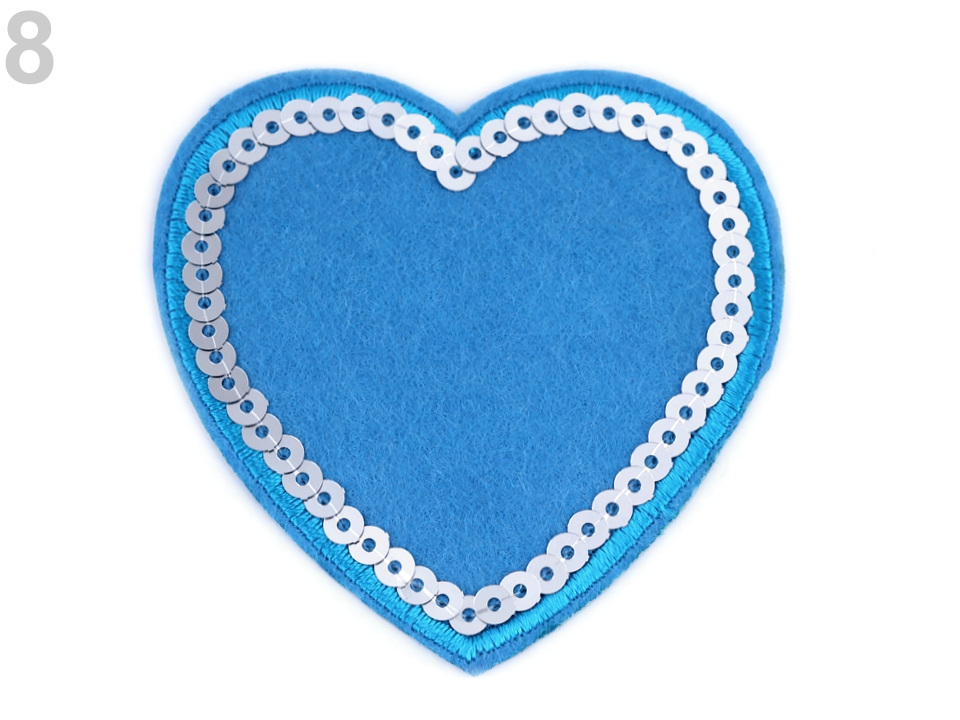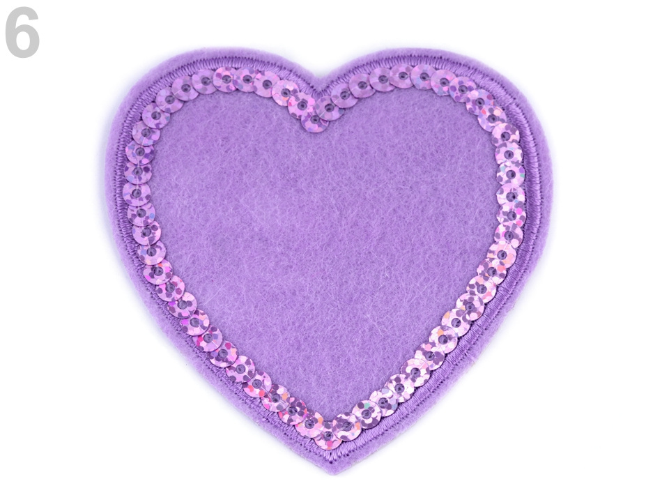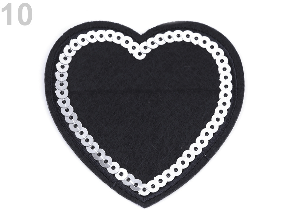 Nažehlovačka s motivem srdce je po stranách ozdobená flitry. Skvěle oživí džíny, bundy, saka, čepice, batohy či tašky.