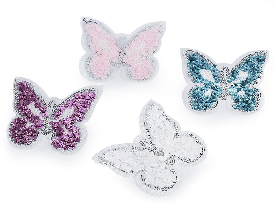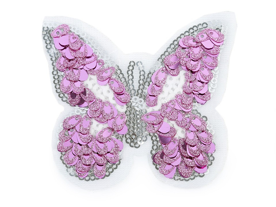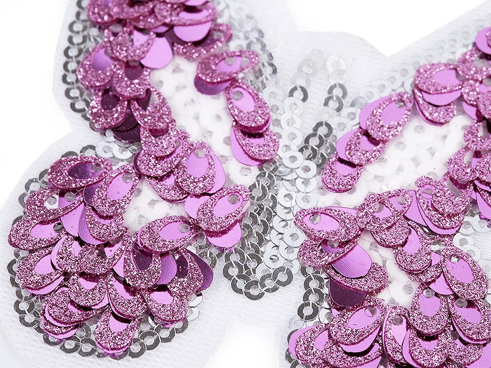 Nažehlovačka motýla potěší všechny slečny. Díky oslnivě lesklým flitrům s jemnými glitry bude nepřehlednutelným prvkem, oživujícím oblečení i doplňky.