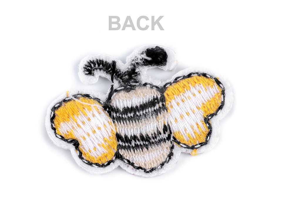 Mini nažehlovačka malé včelky se jemně leskne. Je kvalitní, celoplošně vyšívaná, vynikne na oblečení, módních doplňcích i na bytových dekoracích.