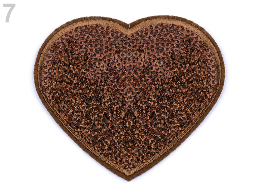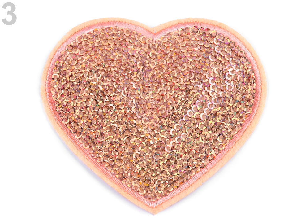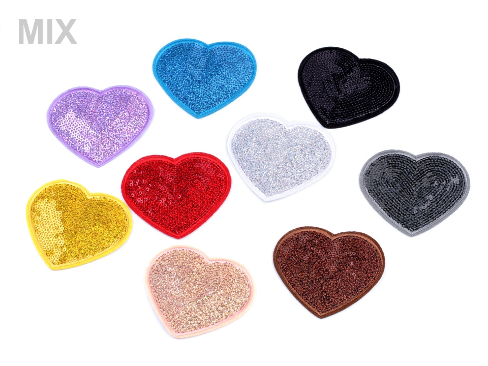 Nažehlovačku s motivem srdce si zamilují dívky každého věku. Díky třpytivým flitrům skvěle oživí džíny, bundy, saka, čepice, batohy či tašky. Nažehlovačky slouží také k zakrytí drobných dírek a malých nedokonalostí v textilu.