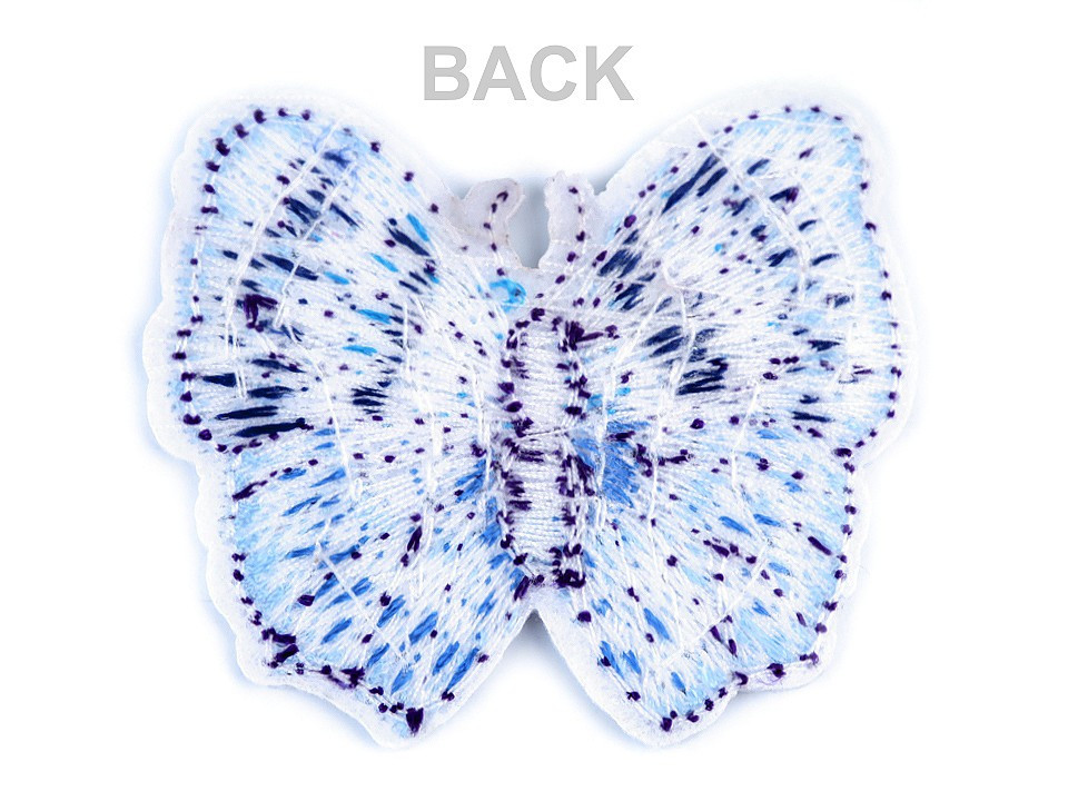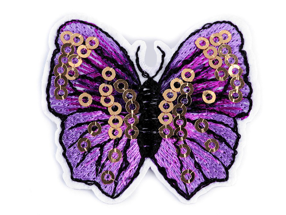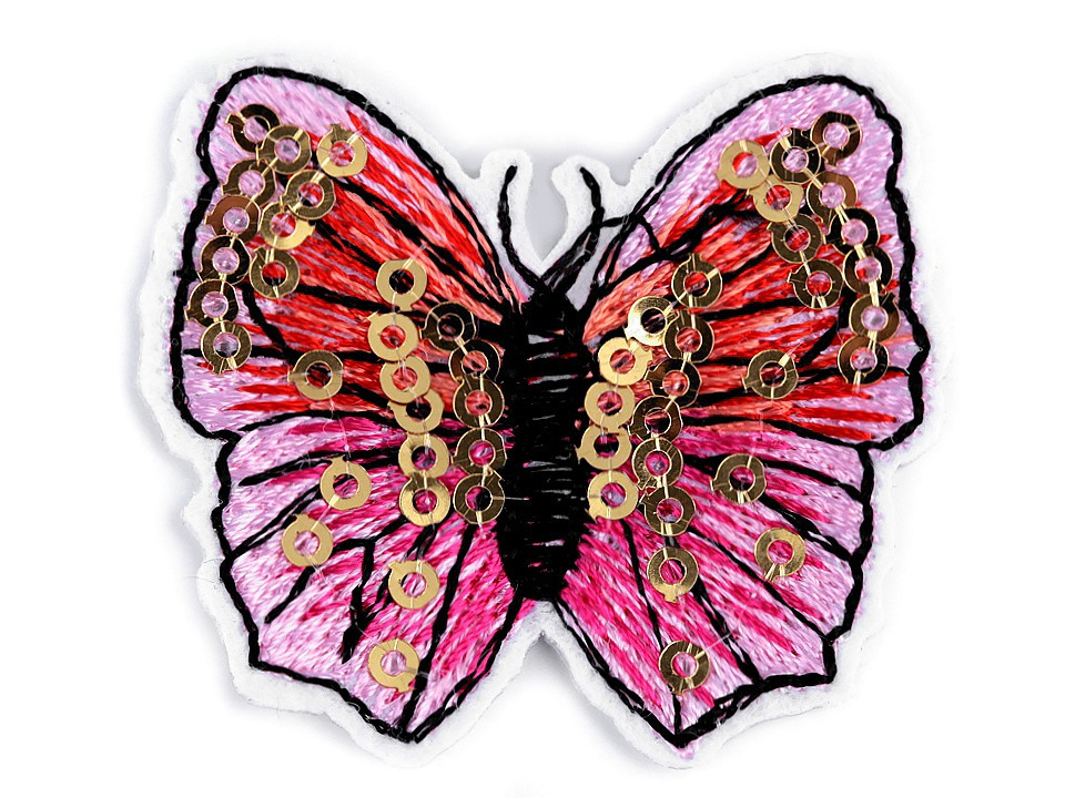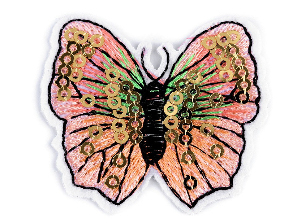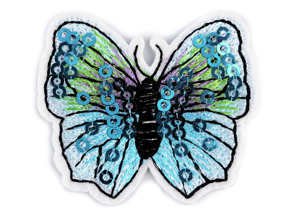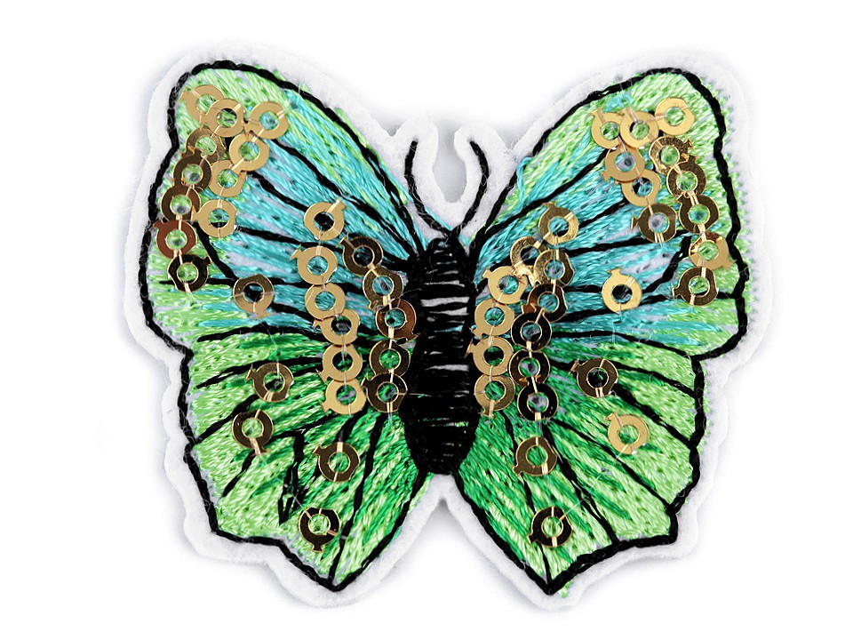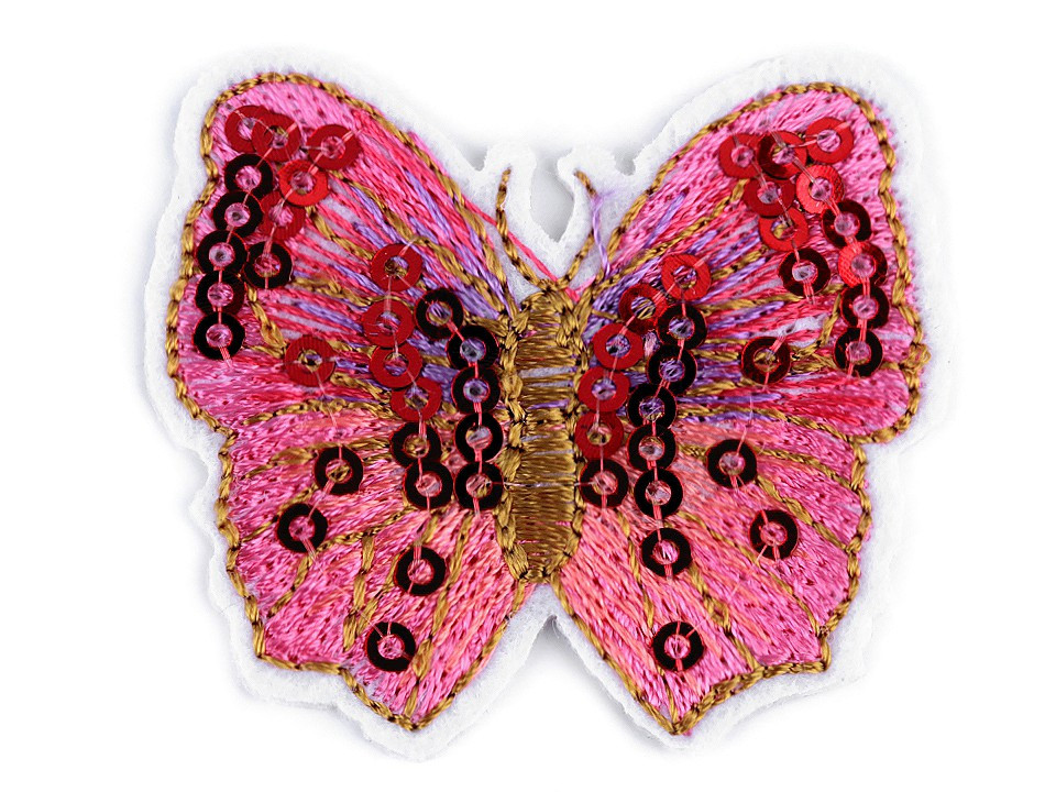 Nažehlovačka s motivem barevného motýla posetého flitry potěší všechny slečny. Díky lesklým flitrům a detailní celoplošné výšivky bude nepřehlédnutelným prvkem, oživujícím oblečení i doplňky.