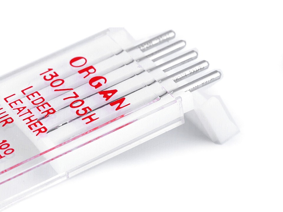 Strojové jehly Organ využijete k prošití kůže a imitace kůže. Z jedné strany mají plošku a speciální zkosení pro lepší průnik do materiálu.