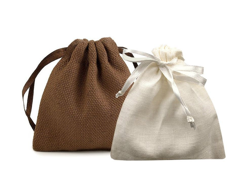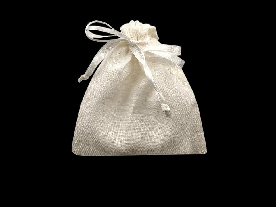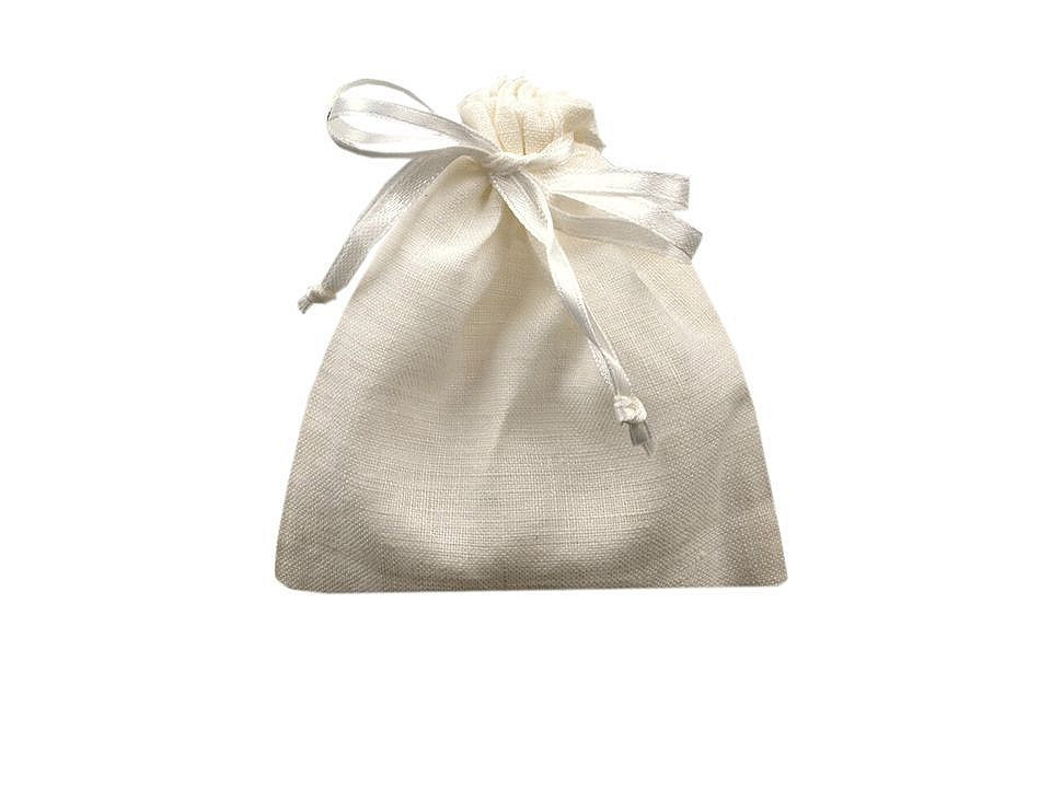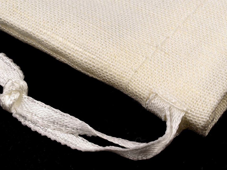 Lněný pytlík jednoduše uzavřete pomocí dvou saténových stahovacích šňůrek.