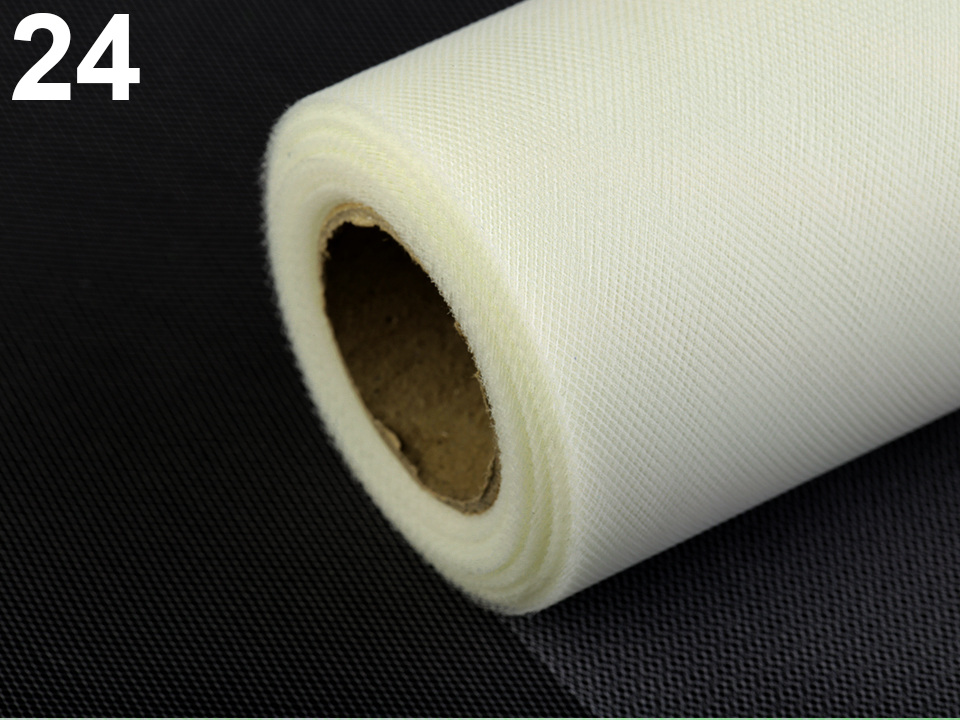 Můžete ho rovněž využít k ozdobě šatů, jako ozdobné řasení. Jelikož je hodně jemný, je nutné řasení hodně husté, aby drželo tvar. Jeho gramáž je 22,8g/m2.