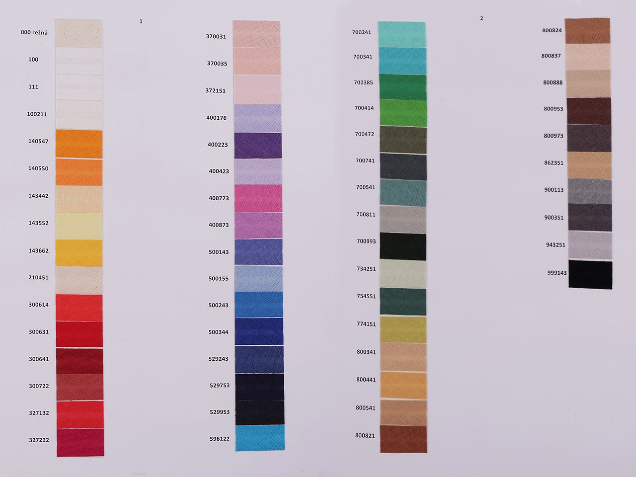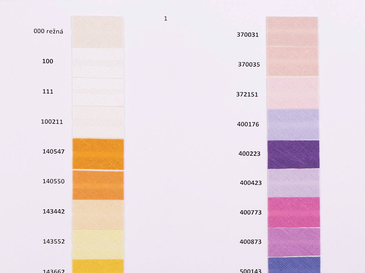 Vzorkovnice je určená pro šikmé proužky bavlněné zažehlené, které najdete níže.