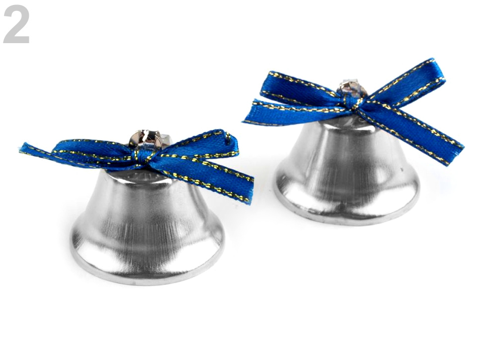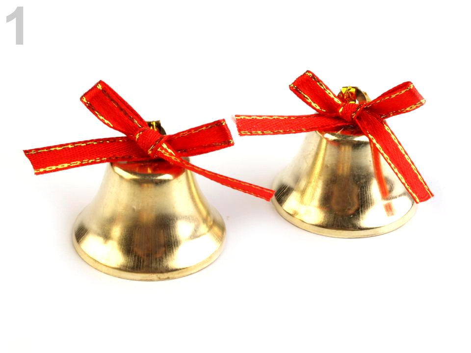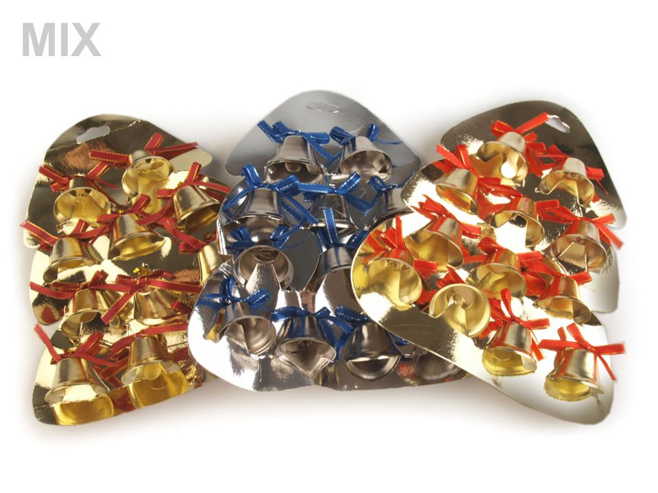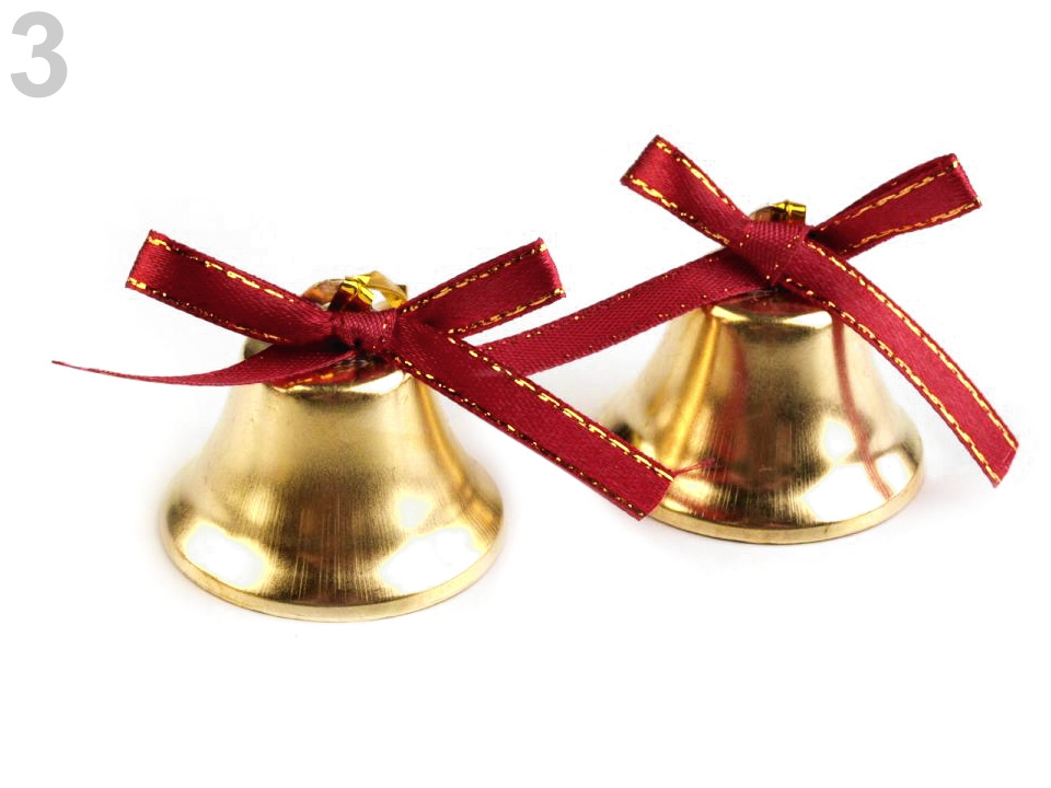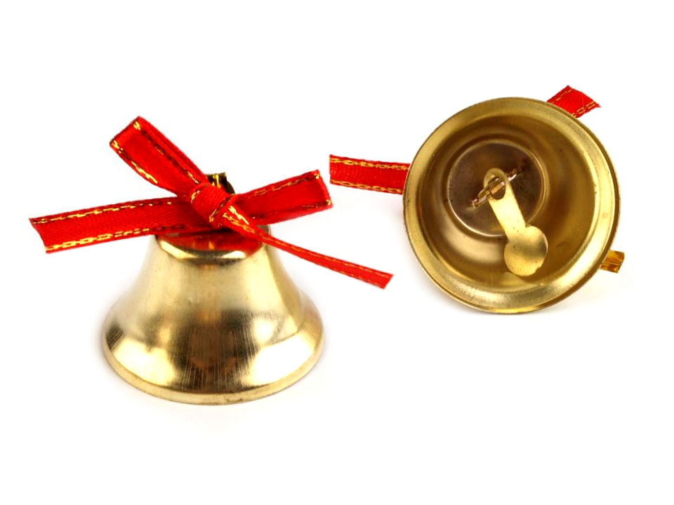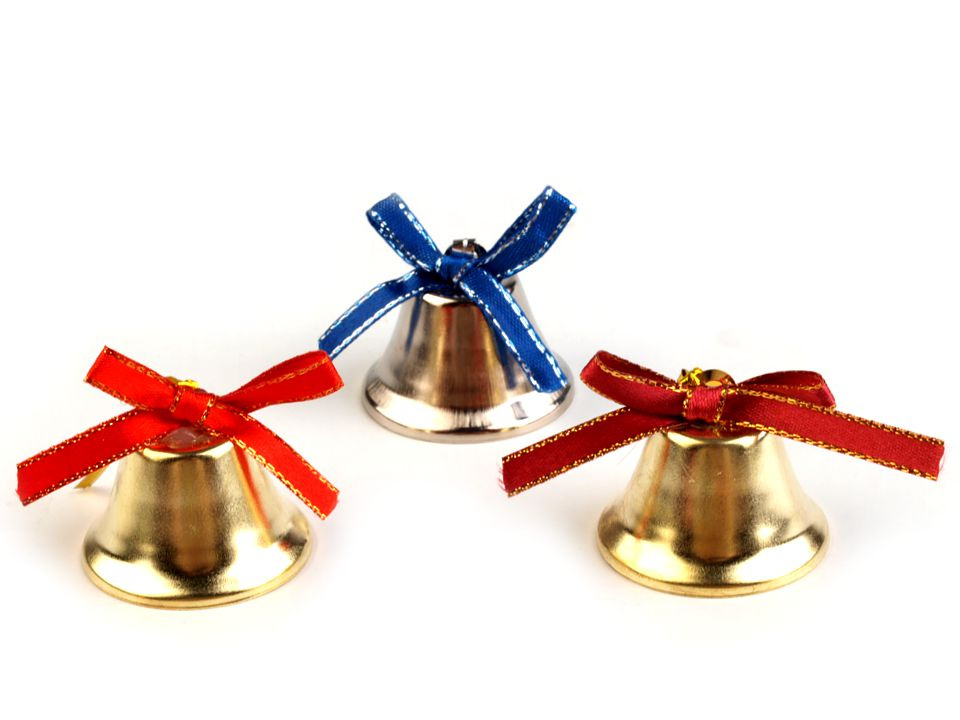 Kovové zvonečky patří k nejvíce využívaným druhům dekorace. Jsou ozdobené jemnou mašlí ze stuhy a cinkají. Mají očka, na kterých jsou připevněny ploché dekorační drátky a díky nim je můžete kamkoliv připevnit.