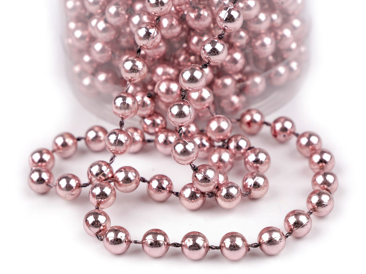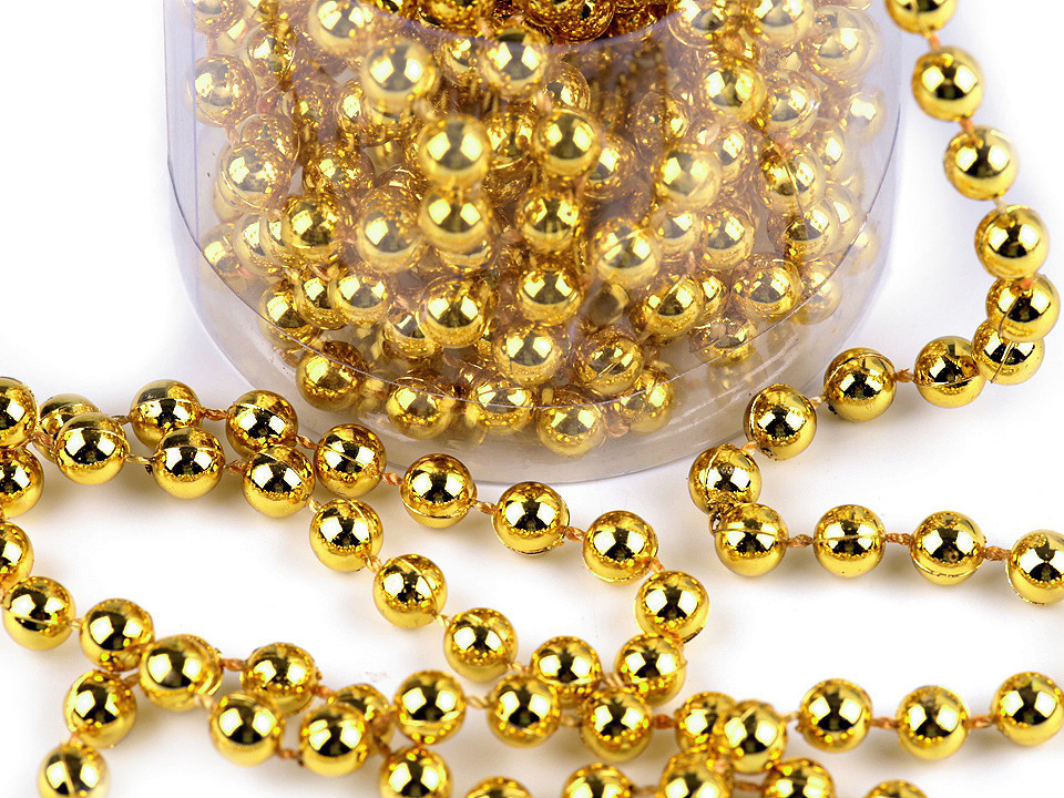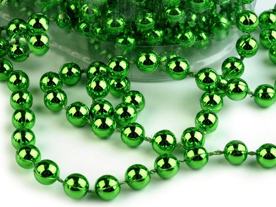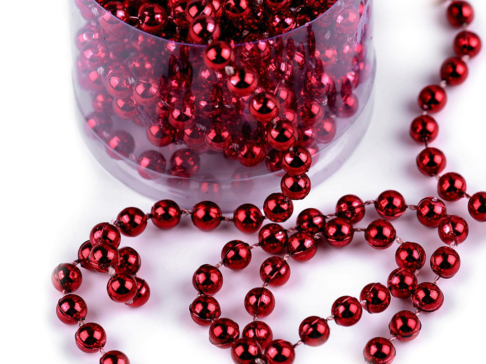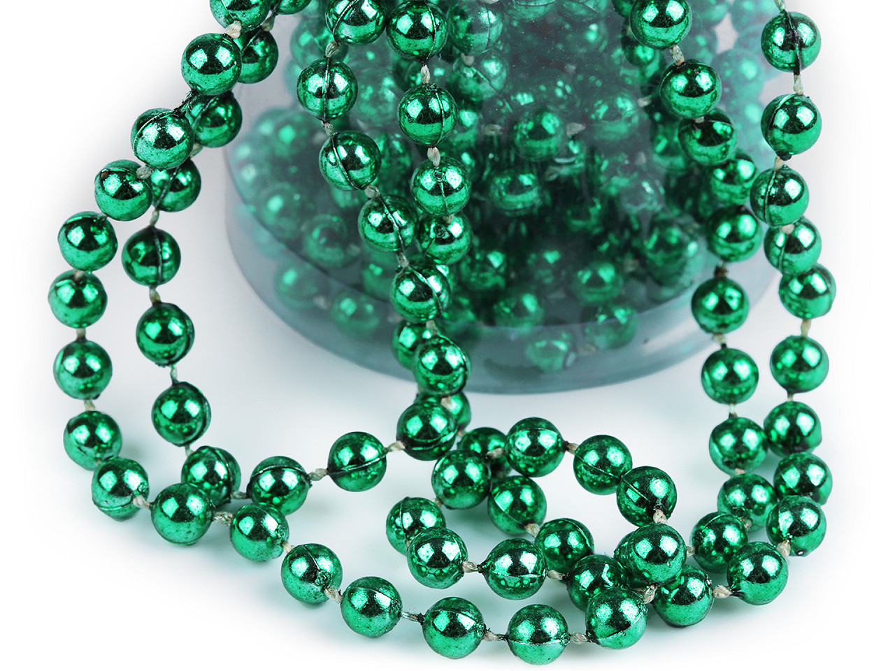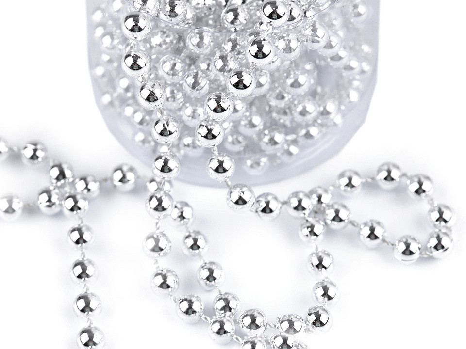 Perličkové řetězy jsou velkým hitem mezi dekoracemi. Můžete je používat během celého roku, nejen o Vánocích. Ozdobte si jím dekorace, svatební tabuli či slavnostně vyzdobený stůl. Perličkový řetěz je k dostání v mnoha barvách – stříbrná, červená, zlatá, hnědá, modrá a zelená. Kuličky jsou vyrobeny z plastu a dají se snadno oddělit nůžkami, pokud si řetěz budete chtít zkrátit. Řetěz je o průměru 6 mm a délce 270 cm.