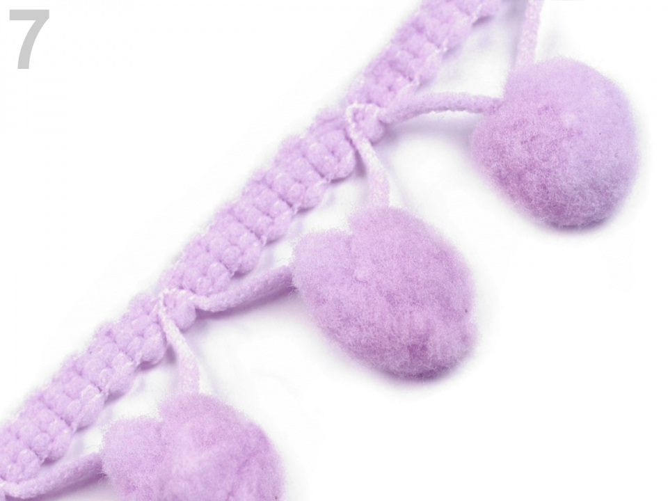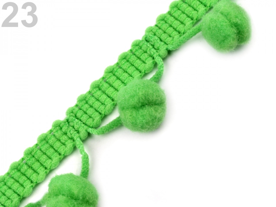 Šířka prýmku i s bambulkou je 20 mm, bambule měří cca 10 mm.
