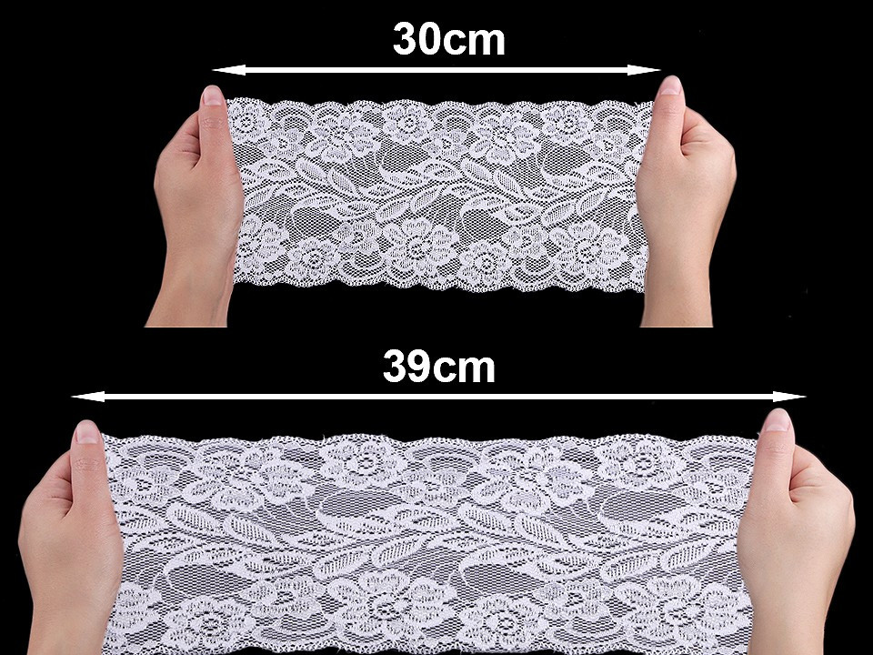 Použití: Krajku využijete na zdobení spodního prádla, halenek, šatů apod. Je vhodná také k oživení bytových doplňků jako jsou polštáře, ubrusy nebo prostírání.