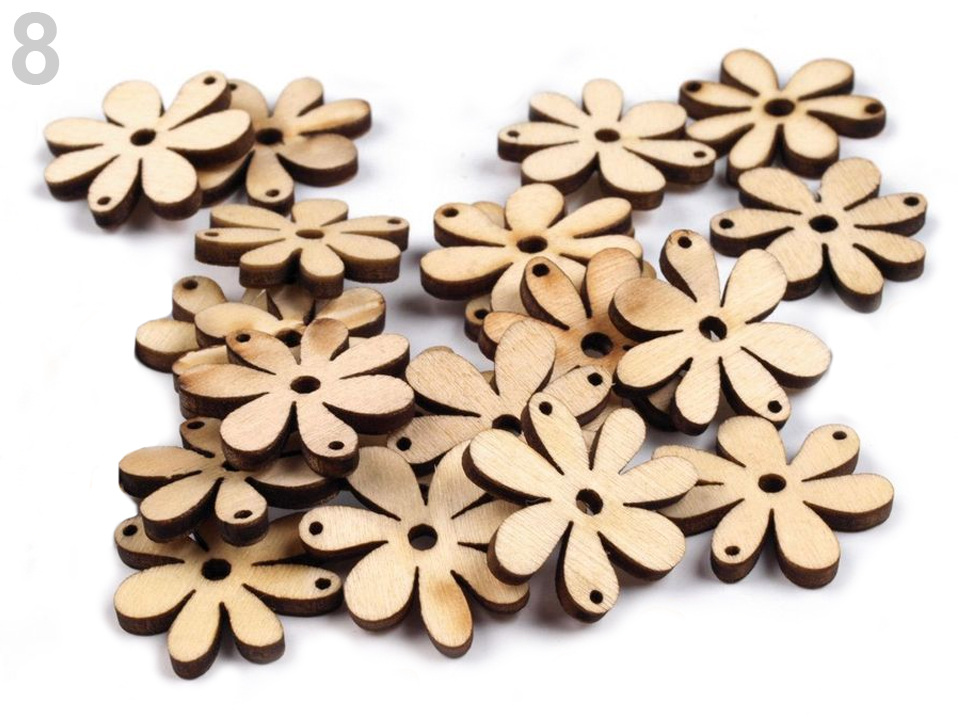 Jsou vyrobeny z kvalitního dřeva a obarveny, aby získaly zajímavý a lákavý vzhled. Květinky můžete použít na výrobu náušnic, náhrdelníků i náramků, záleží na vaší fantazii. Bílé a béžové květiny si můžete navíc dozdobit podle sebe. Jejich velikou výhodou je lehký materiál, který je velice příjemný na nošení.