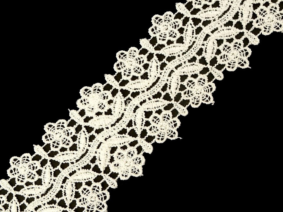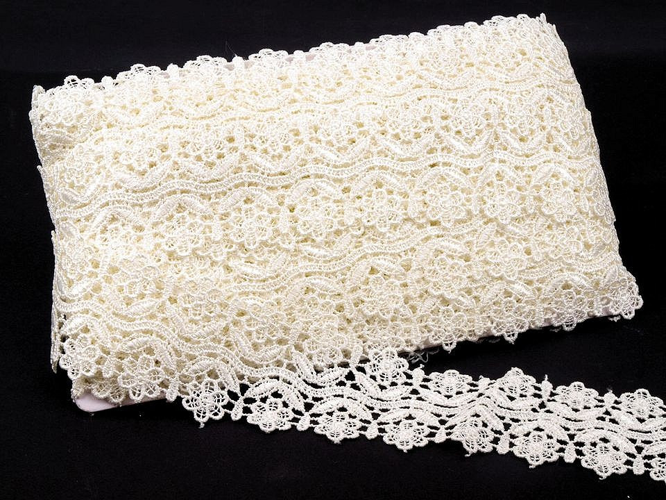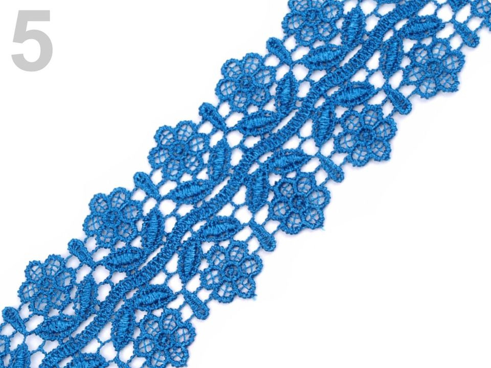 Krajka o šíři 50 mm zobrazuje motiv květin. Má široké uplatnění. Nejčastěji se používá k olemování ubrusů, deček a oděvů. Může být však použita jako dekorace na přání k narozeninám nebo na svatební oznámení. Zakoupíte ji v návinu 13,5 m nebo pouze v modré barvě v libovolné metráží.