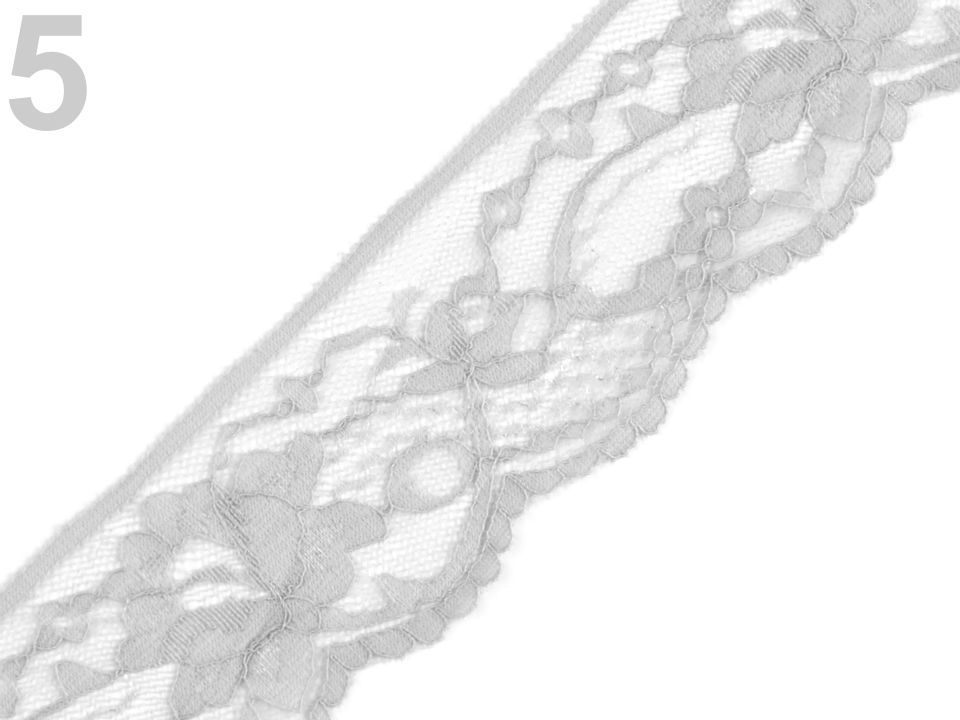 Jemná krajka se zajímavým květinovým designem je pružná a zakončují ji pravidelné vlnky.