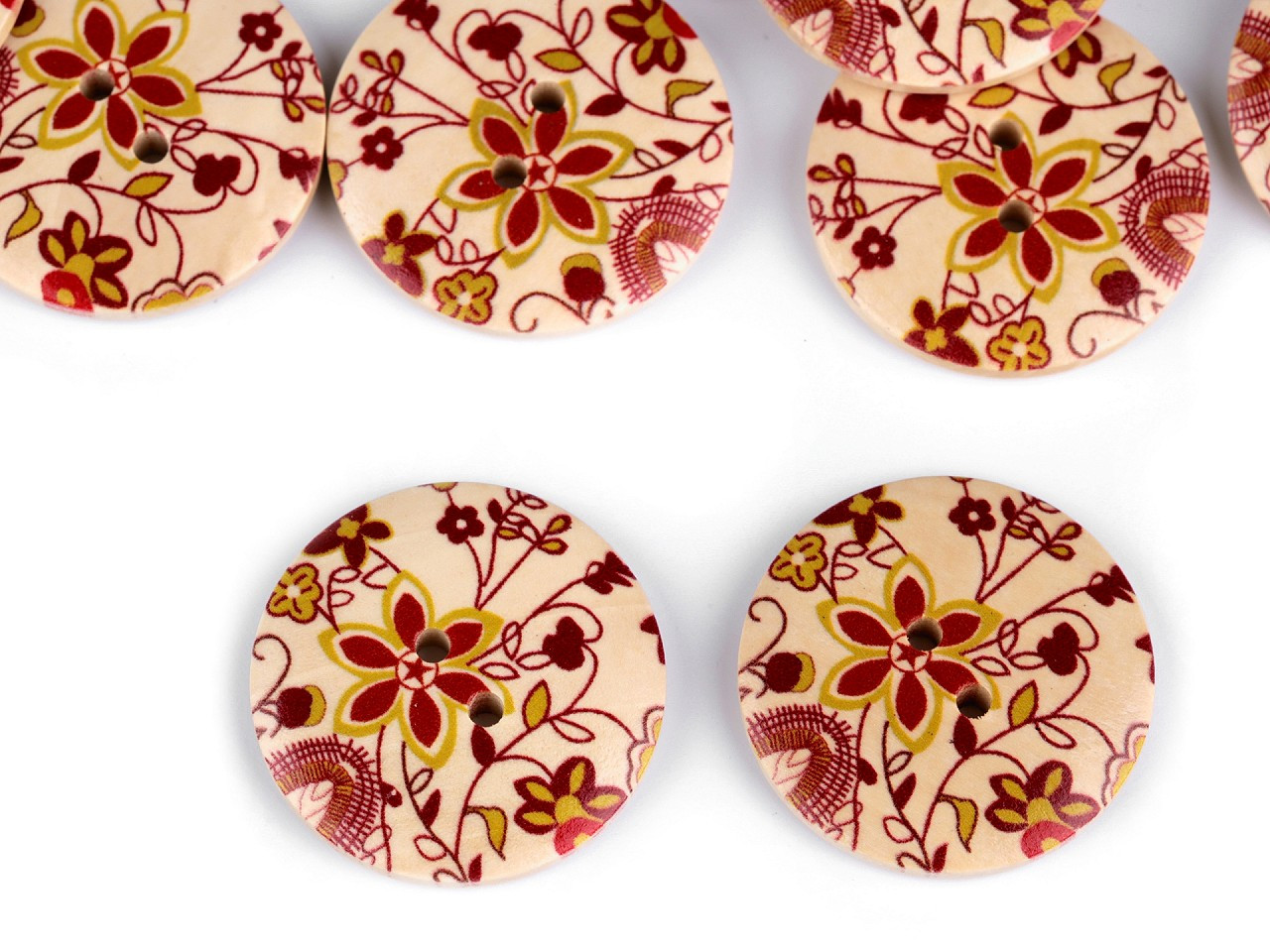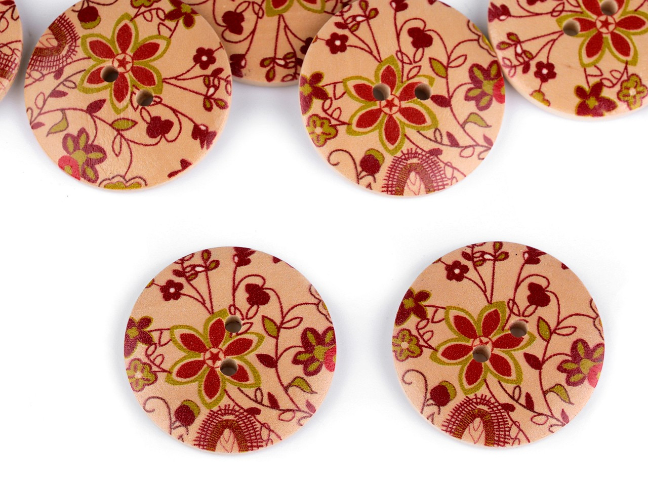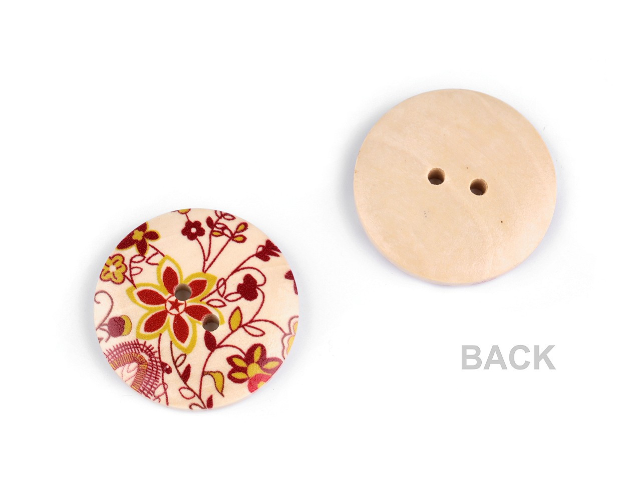 Knoflík dřevěný květ velikost 48" - 7 přírodní stř.