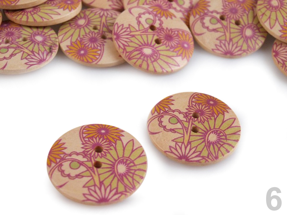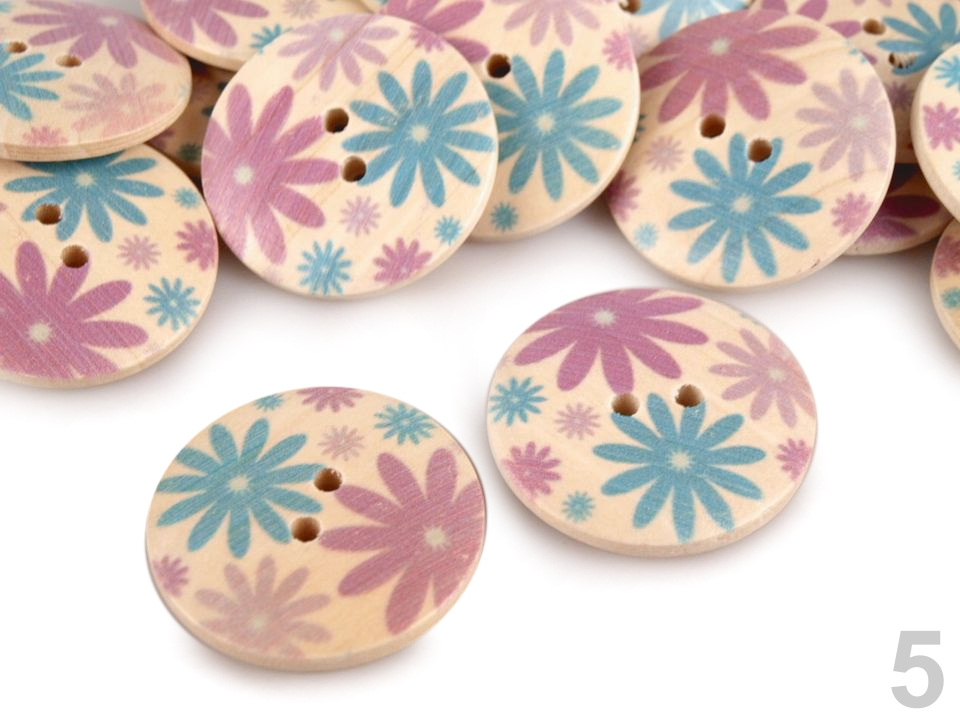 Knoflík dřevěný květ velikost 48" - 6 fialová světlá