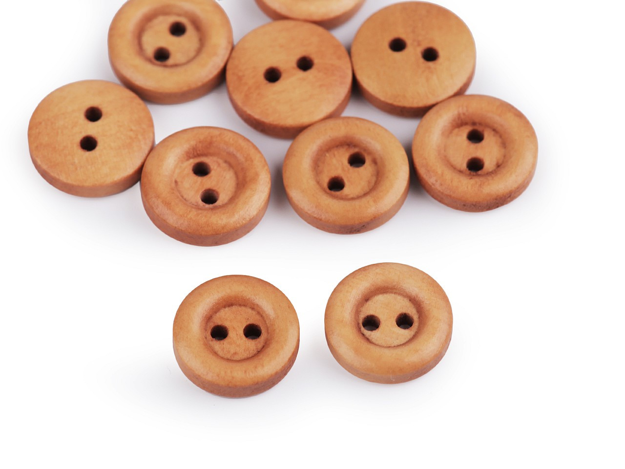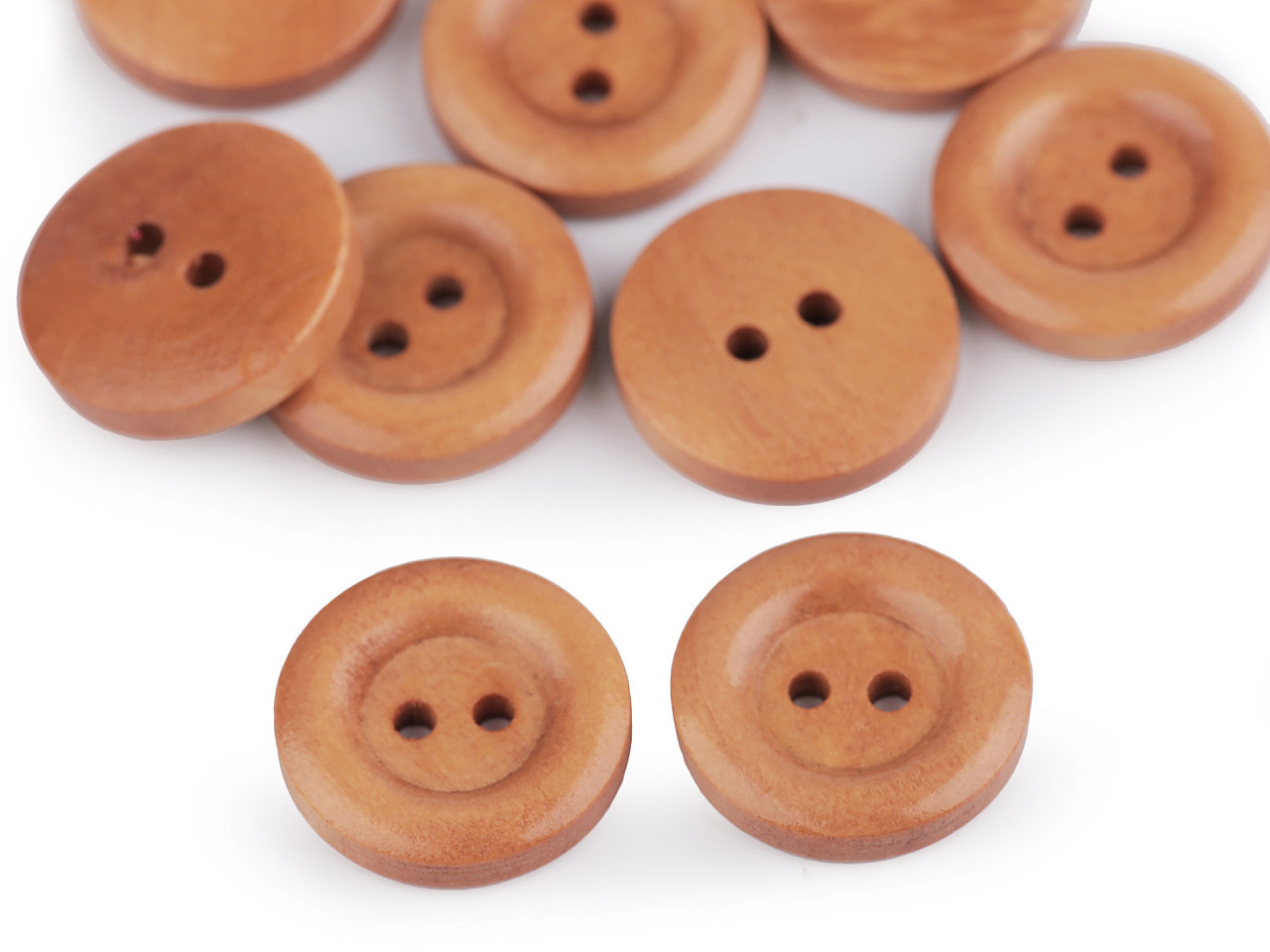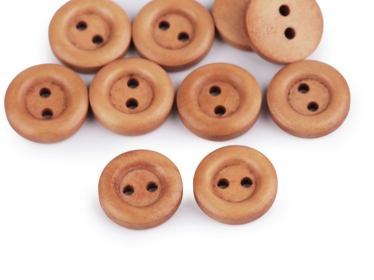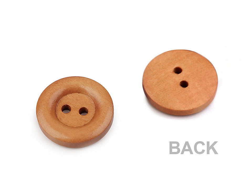 Knoflík se zvýšeným okrajem je vyrobený ze dřeva. Můžete jej přišít na svetry či kabátky nebo použít jako jeden z materiálů na scrapbooking.