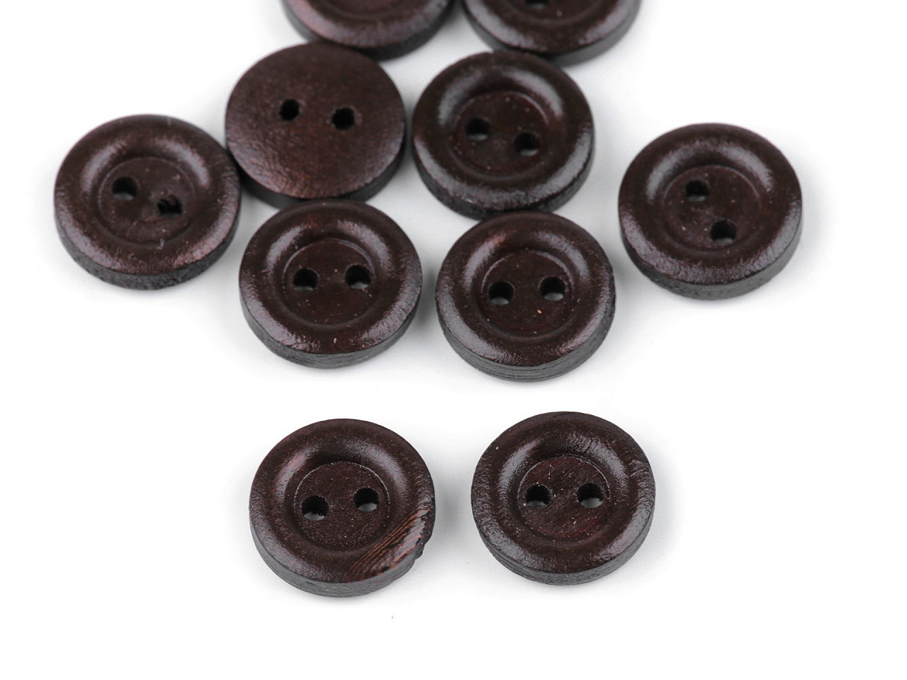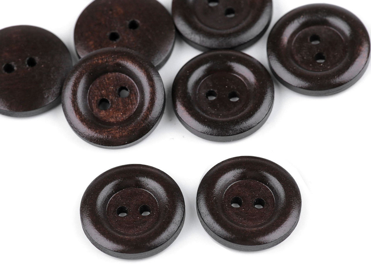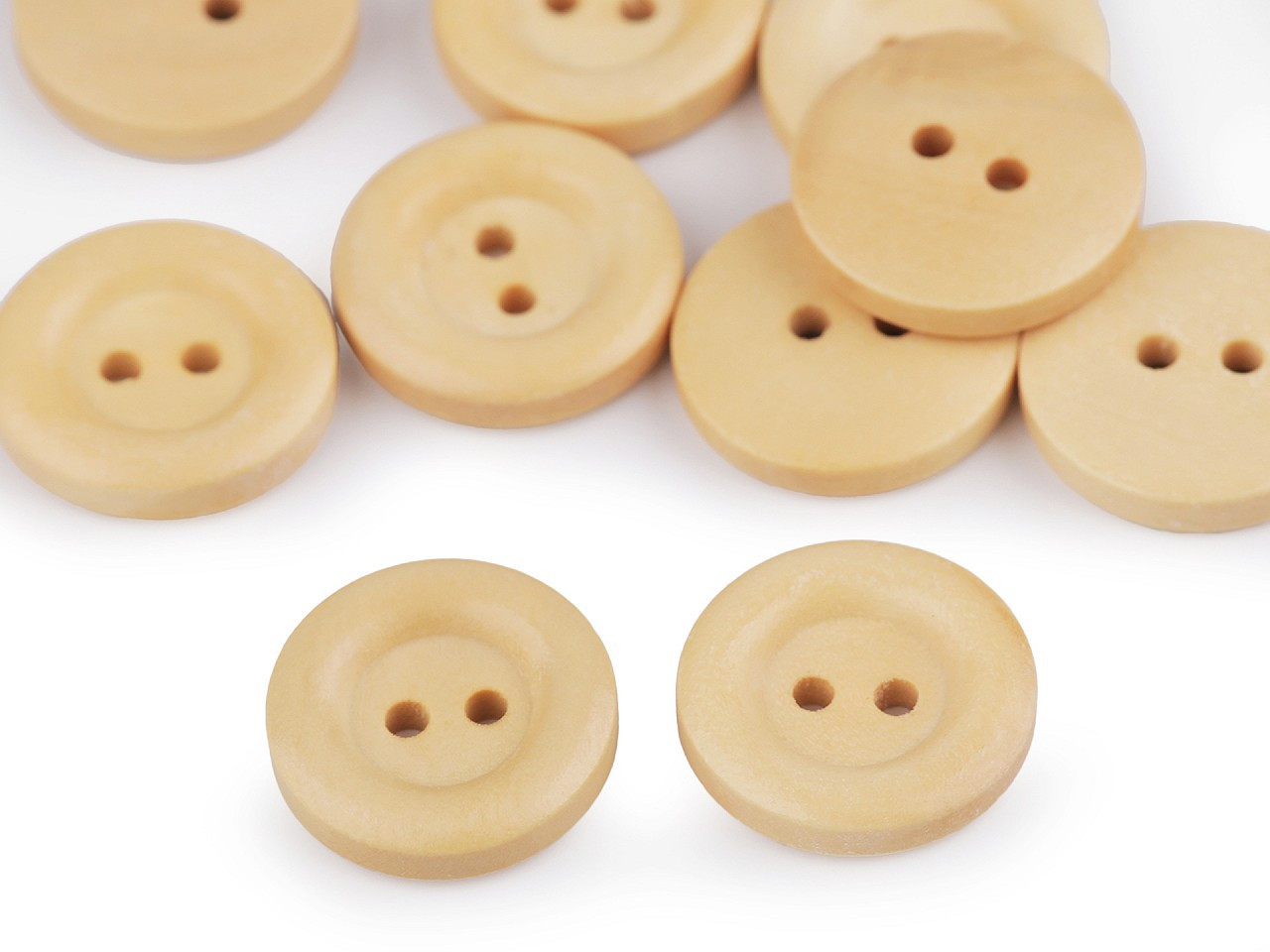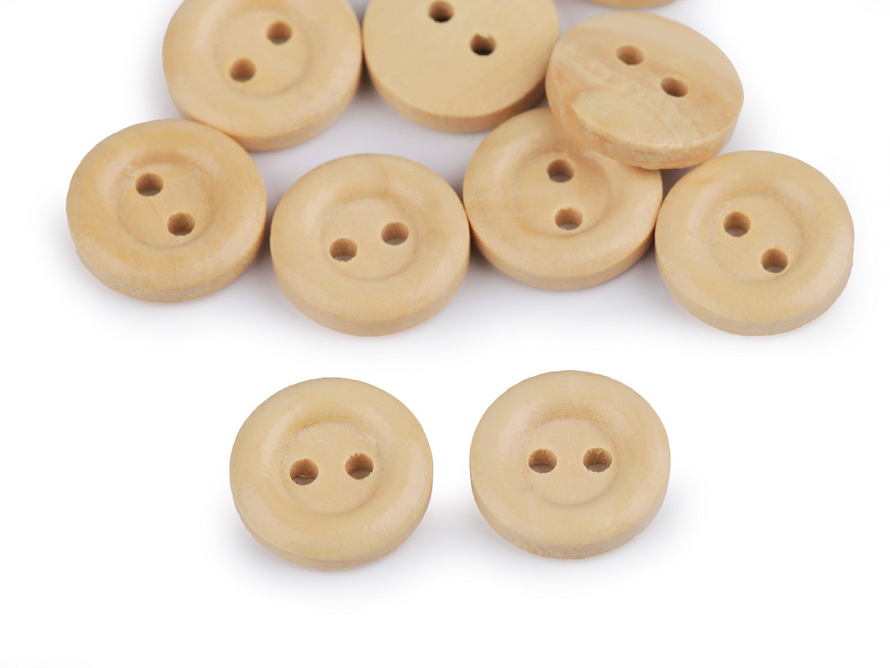 Knoflík se zvýšeným okrajem je vyrobený ze dřeva. Můžete jej přišít na svetry či kabátky nebo použít jako jeden z materiálů na scrapbooking.