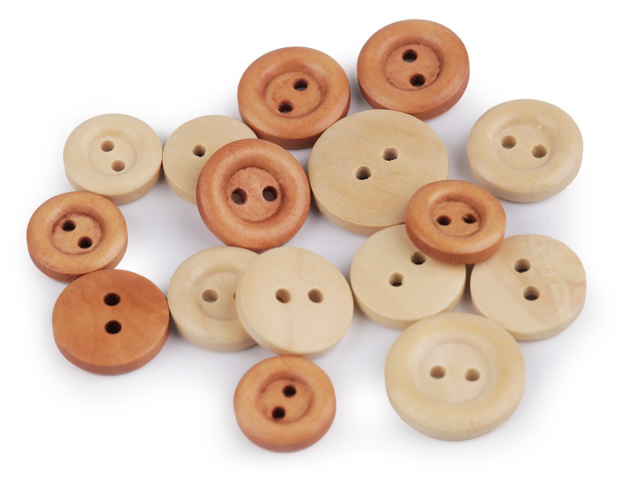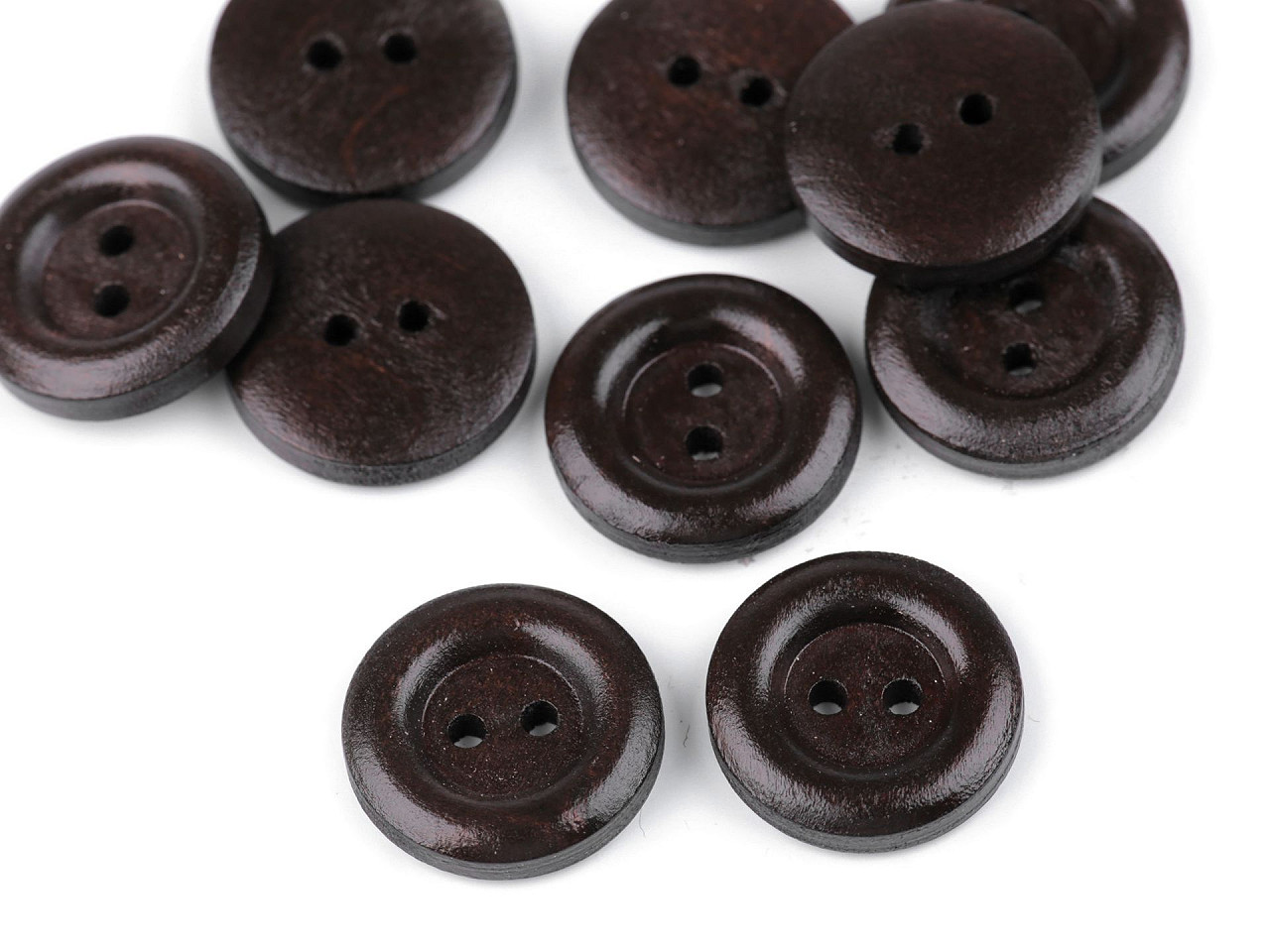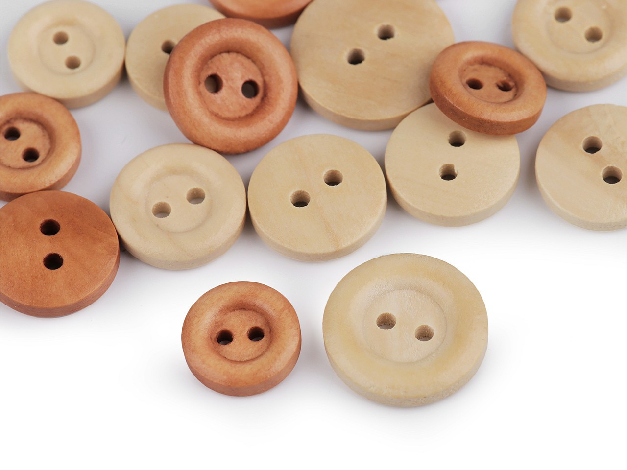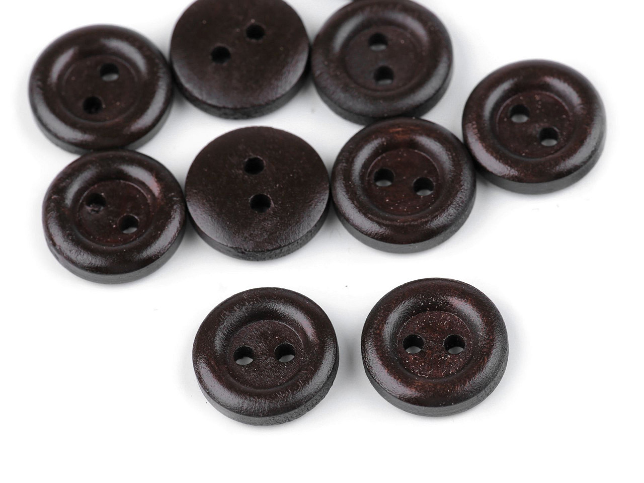 Knoflík se zvýšeným okrajem je vyrobený ze dřeva. Můžete jej přišít na svetry či kabátky nebo použít jako jeden z materiálů na scrapbooking.