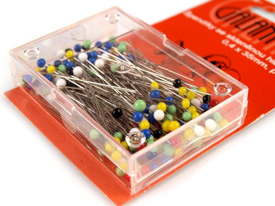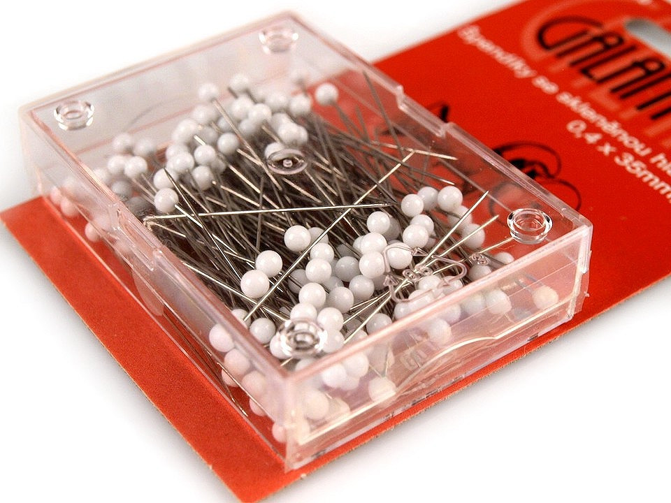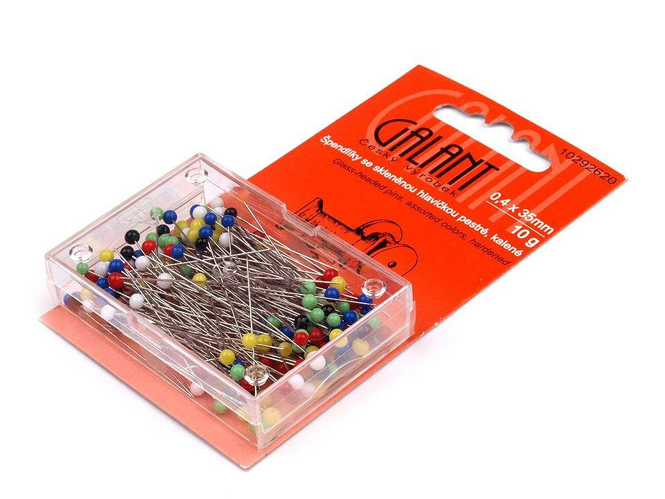 Špendlíky se skleněnou hlavičkou jsou velice tenké a vhodné ke špendlení těch nejtenších látek. Dobře se zapichují a drží v prstech.