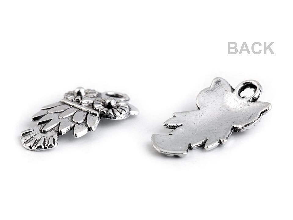 Přívěsek ve tvaru sovy využijete mnoha způsoby. Je jednostranný, z nemagnetického kovu.