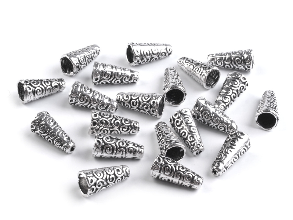 Kovový kaplík s ornamentem můžete využít jako zajímavý a oživující prvek v široké škále výrobků. Je vhodný jako koncovka na oděvní šňůry.