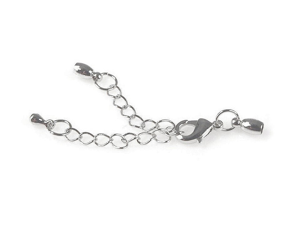 Karabinka s prodlužovacím řetízkem a koncovkami - 2 stříbrná světlá