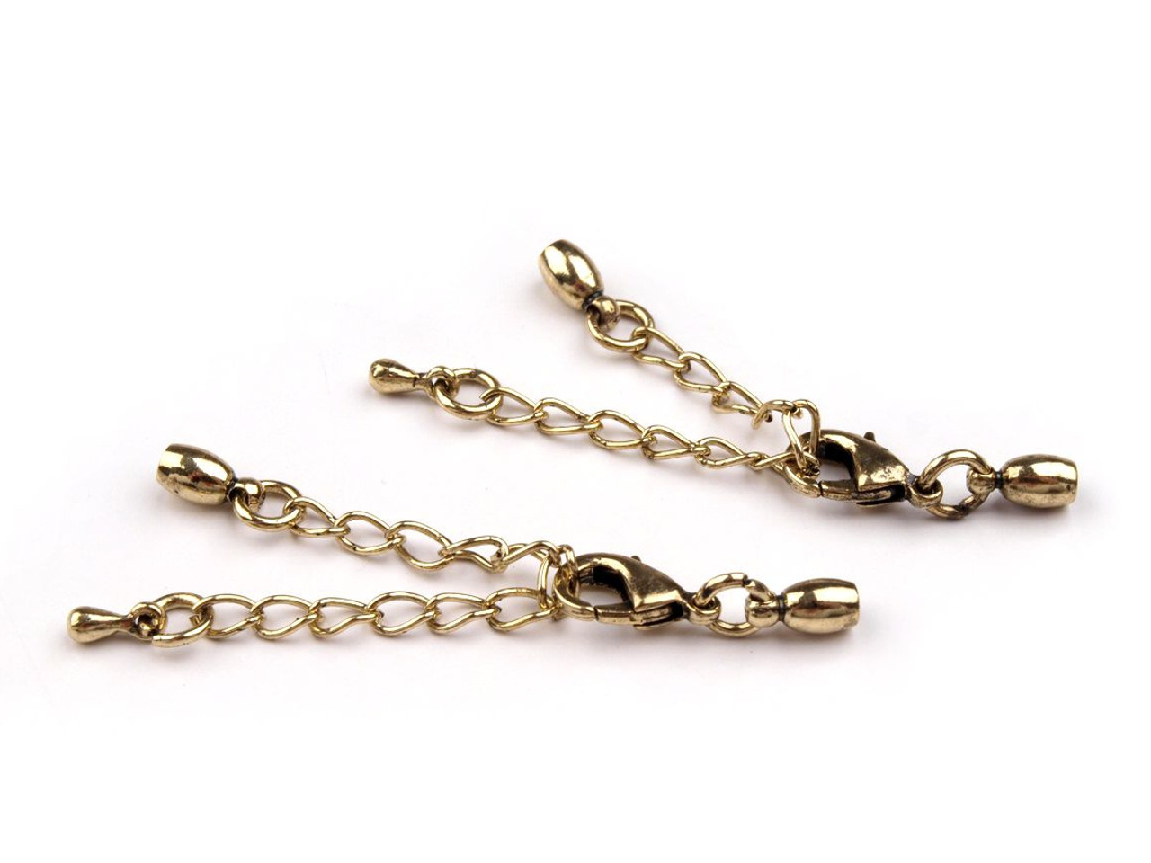 Karabinka s prodlužovacím řetízkem a koncovkami - 1 staromosaz