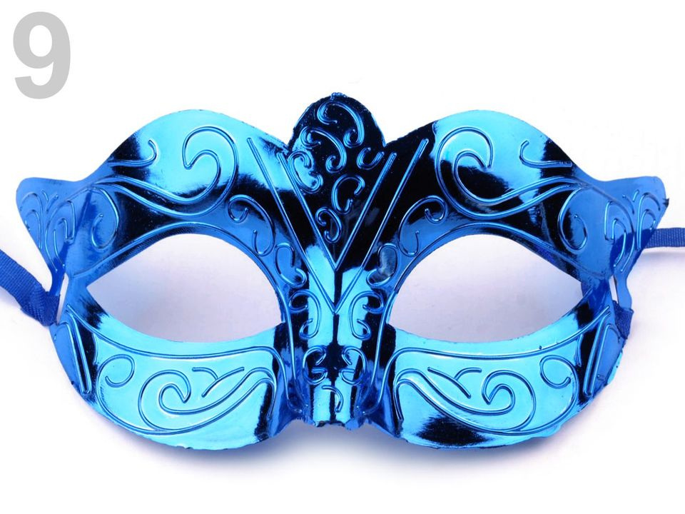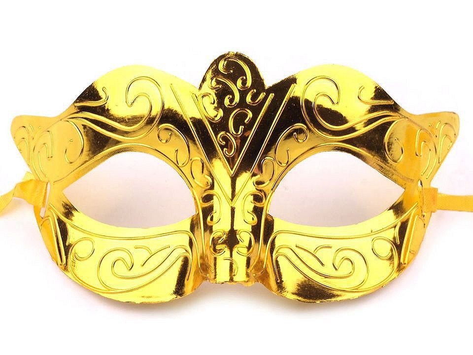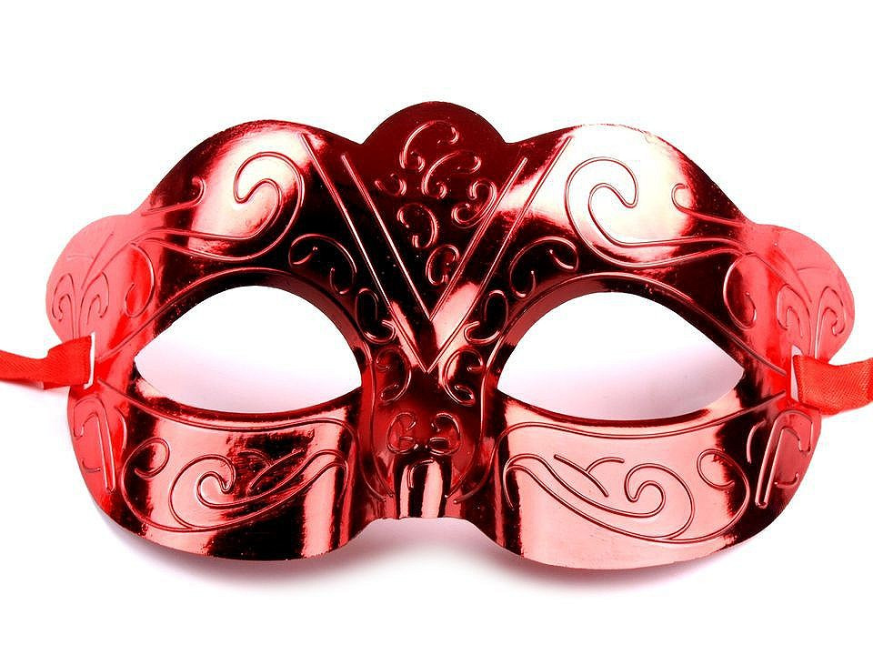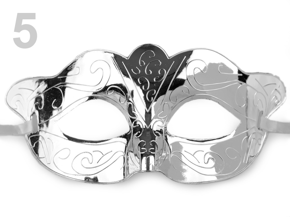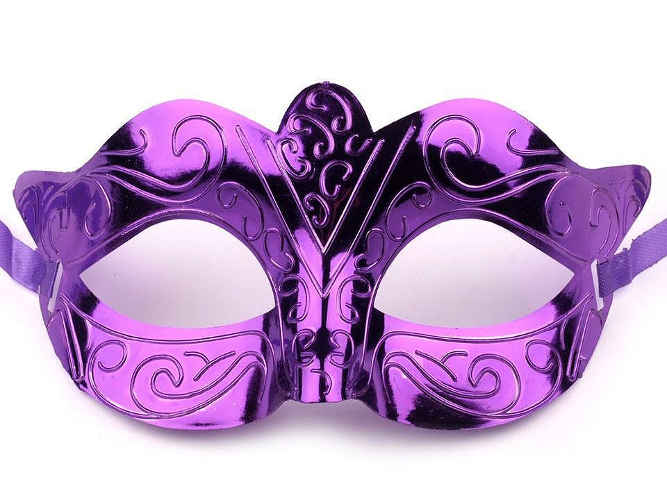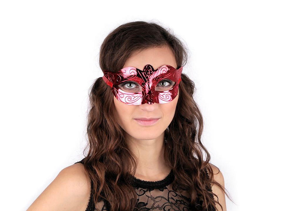 Karnevalová maska z kvalitního plastu. Přichycuje se pomocí stužky, která je vždy v barvě masky. Skvěle se hodí ke karnevalovému kostýmu i na tematicky zaměřené plesy k plesovým šatům.