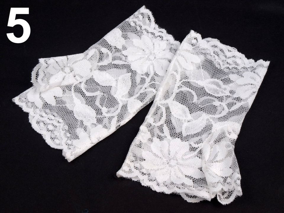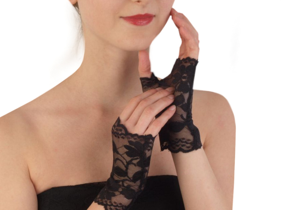 Krajkové rukavičky, které si slečny a dámy navlékají nejčastěji k šatům typu malé černé (little black dress). Krátké bezprsté rukavičky nejsou tak výrazné jako dlouhé společenské rukavice, a tudíž se skvěle kombinují i s oblečením třeba na párty. Oblíbené jsou také mezi vyznavači gotického stylu oblékání. Rukavičky č. 3, 5 a 6 se odlišují vzorem krajky.Složení: 100% polyester