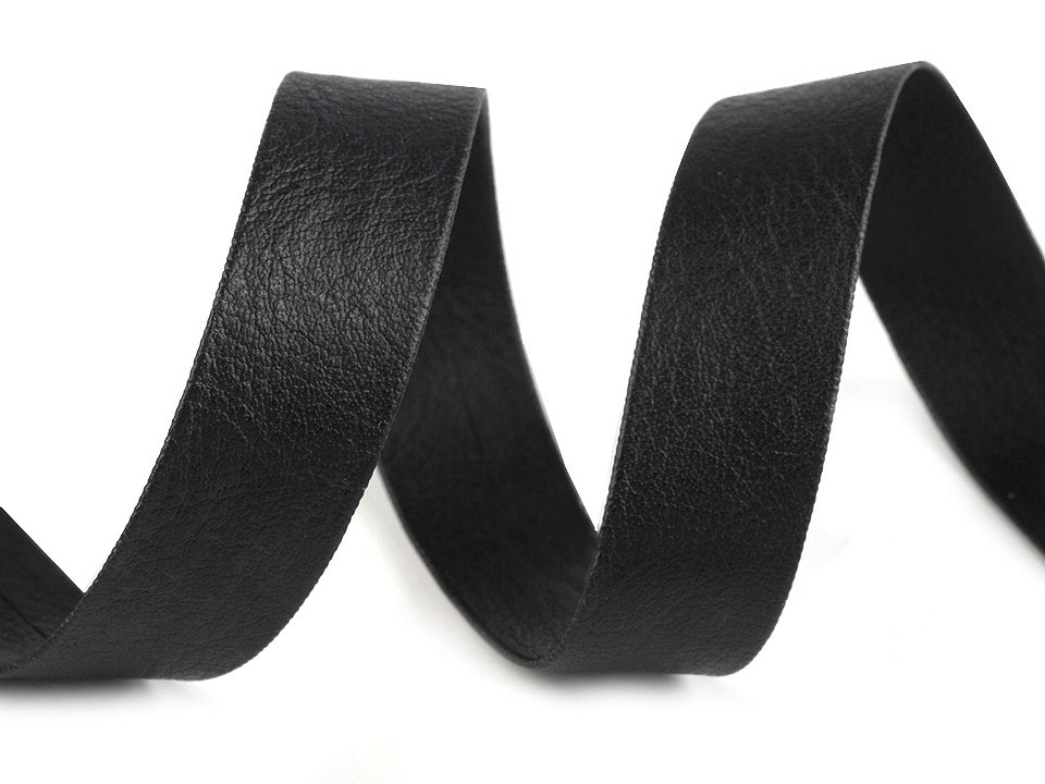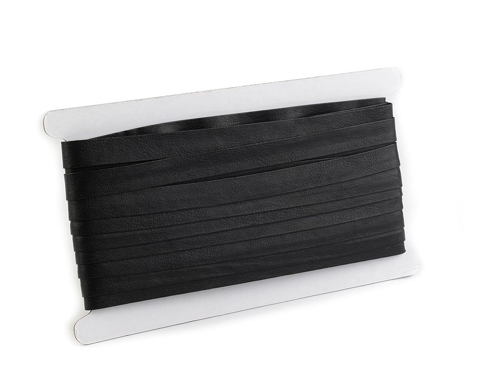 Zažehlený šikmý proužek z koženky o šíři 15 mm. Využijte jej při šití kabelek, různých pouzder a obalů na knihy. Své nezastupitelné místo má koženkový šikmý proužek v krejčovství. Uplatníte jej například na korzetech, svrchních oděvech i obuvi jako lemovku nebo paspulku.