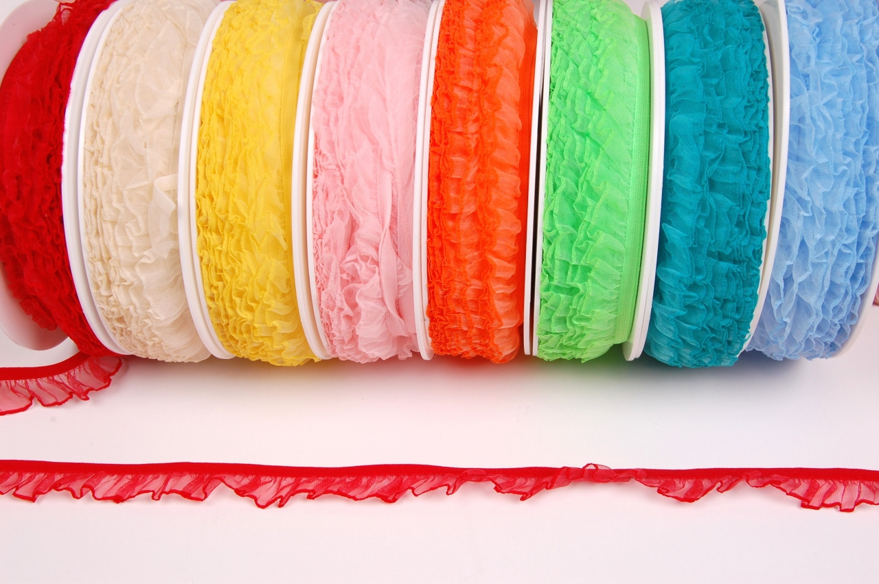 Guma ozdobná volánek neboli pruženka s volánkem, můžeme použít při lemování a zdobení prádla, halenek či sukní.