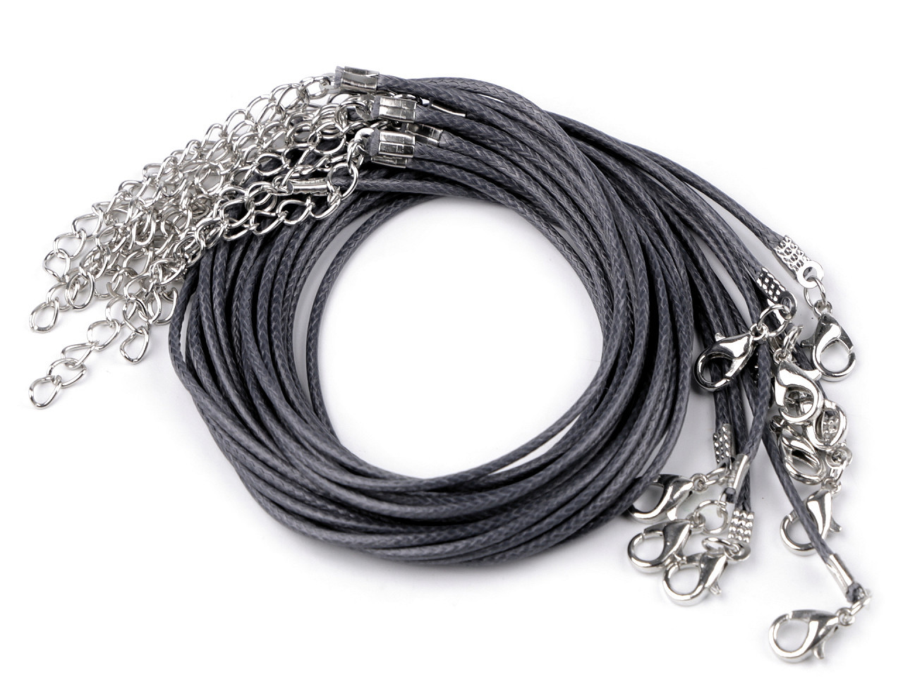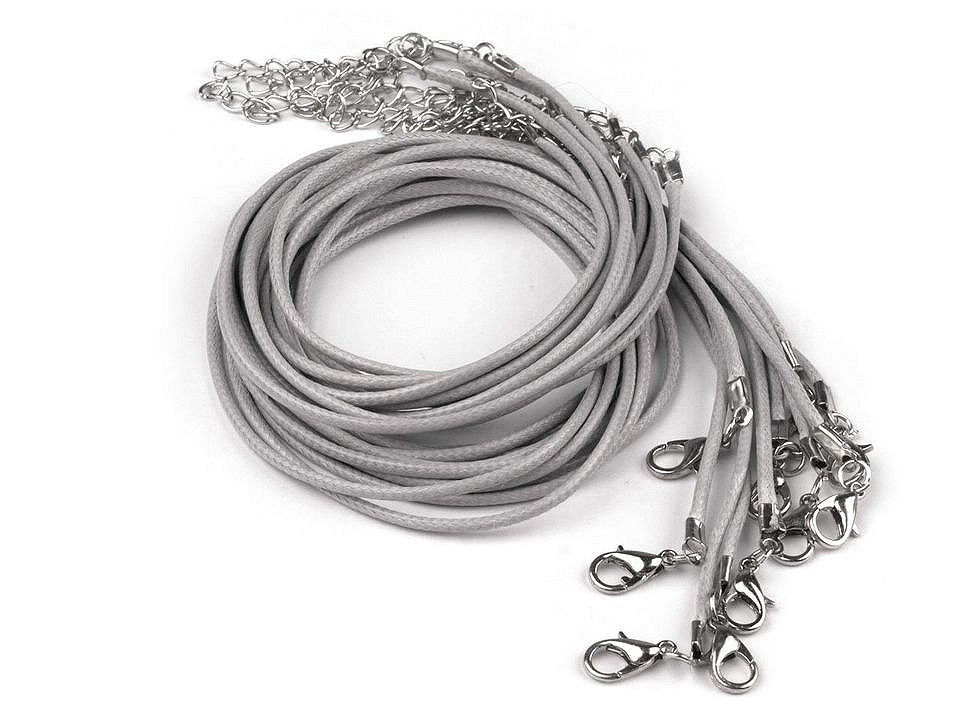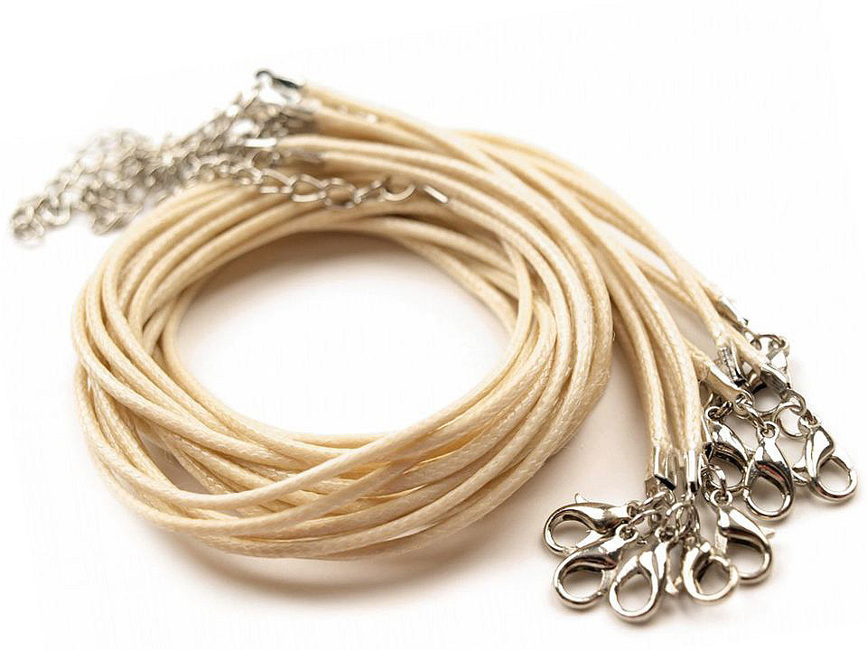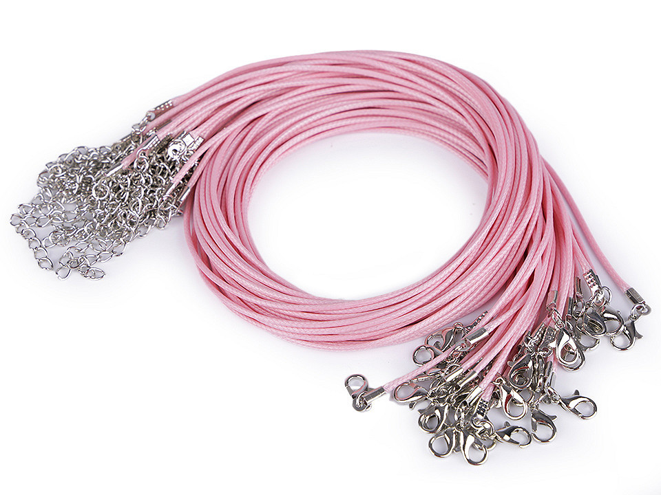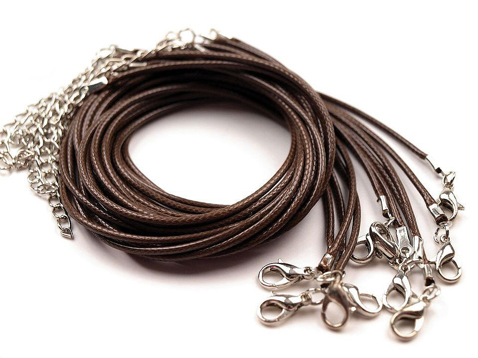 Délka 45 cm + 5 cm adjustační řetízek. Karabinka 5 x 10 mm. Šňůra Ø1,5 mm. V případě, že přívěsek nebude možno díky koncovce navléci, tak lze kleštěmi pružinovou koncovku rozevřít, navléci přívěsek a opět koncovku uzavřít.